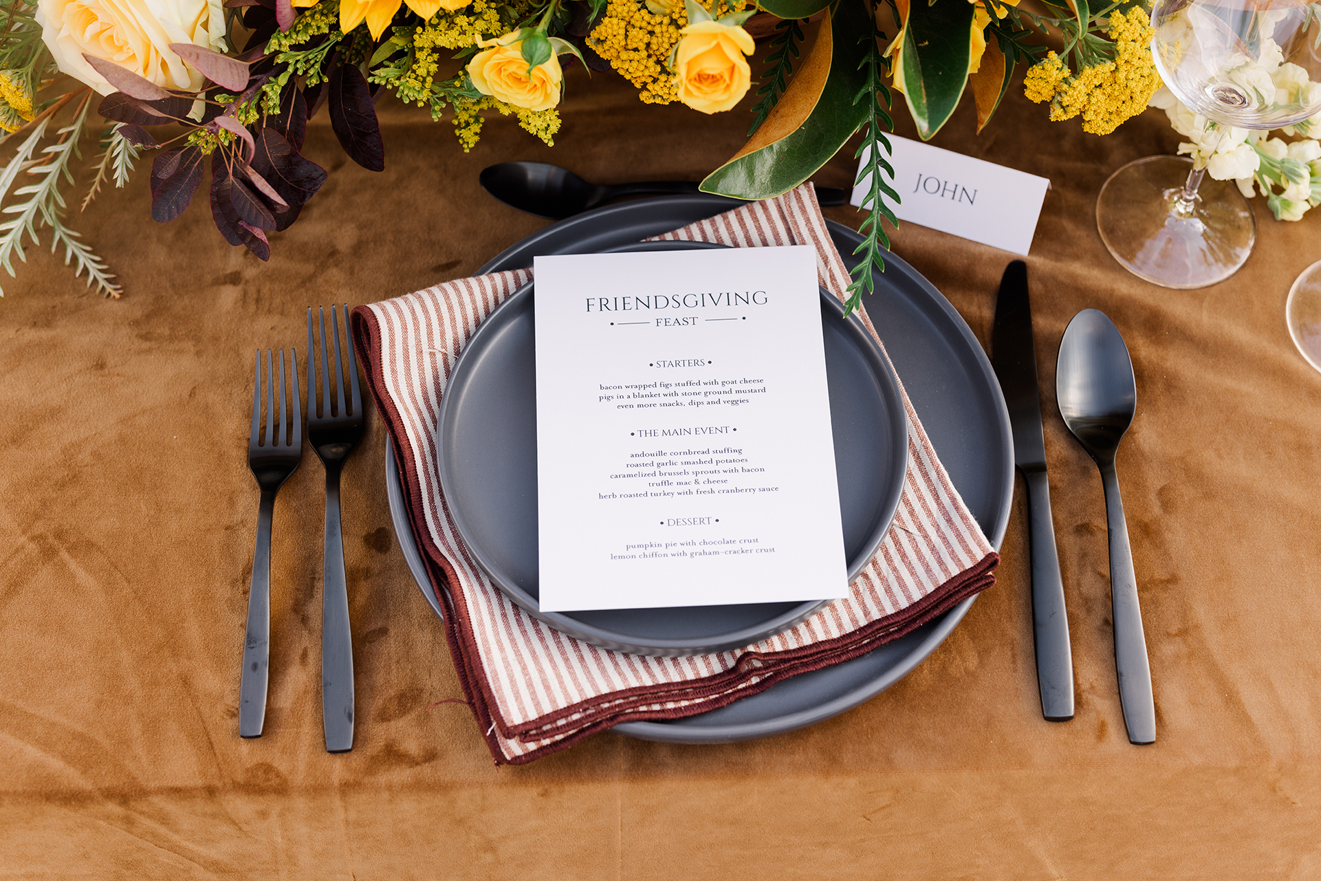 That’s why, in lieu of a typical Thanksgiving spread for this year’s inRegister holiday entertaining feature, we teamed up with event planner Angela DiVincenti Babin of Angela Marie Events to embrace the concept of “Friendsgiving.” This term, first popularized around the early 2010s, refers to an often-casual version of a Thanksgiving gathering that frequently takes place prior to the official Thursday feast.