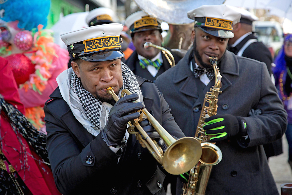 There was a moment amid the glittering pomp and golden swirl of mysteries at the masked ball when award-winning chef and mixologist Samantha Carroll finally got a breather. All the Bayou State dishes she dutifully prepared with husband Cody Carroll to share with the public had vanished, snatched like a string of beads sailing over the heads of parade watchers. And so she found herself floating through the crowd of guests who were busy boogying to the swift thump and funk of the Michael Foster Project, the horn-heavy sextet that had ignited the partygoers with a riotous second-line performance down Main Street and was still blowing them down.