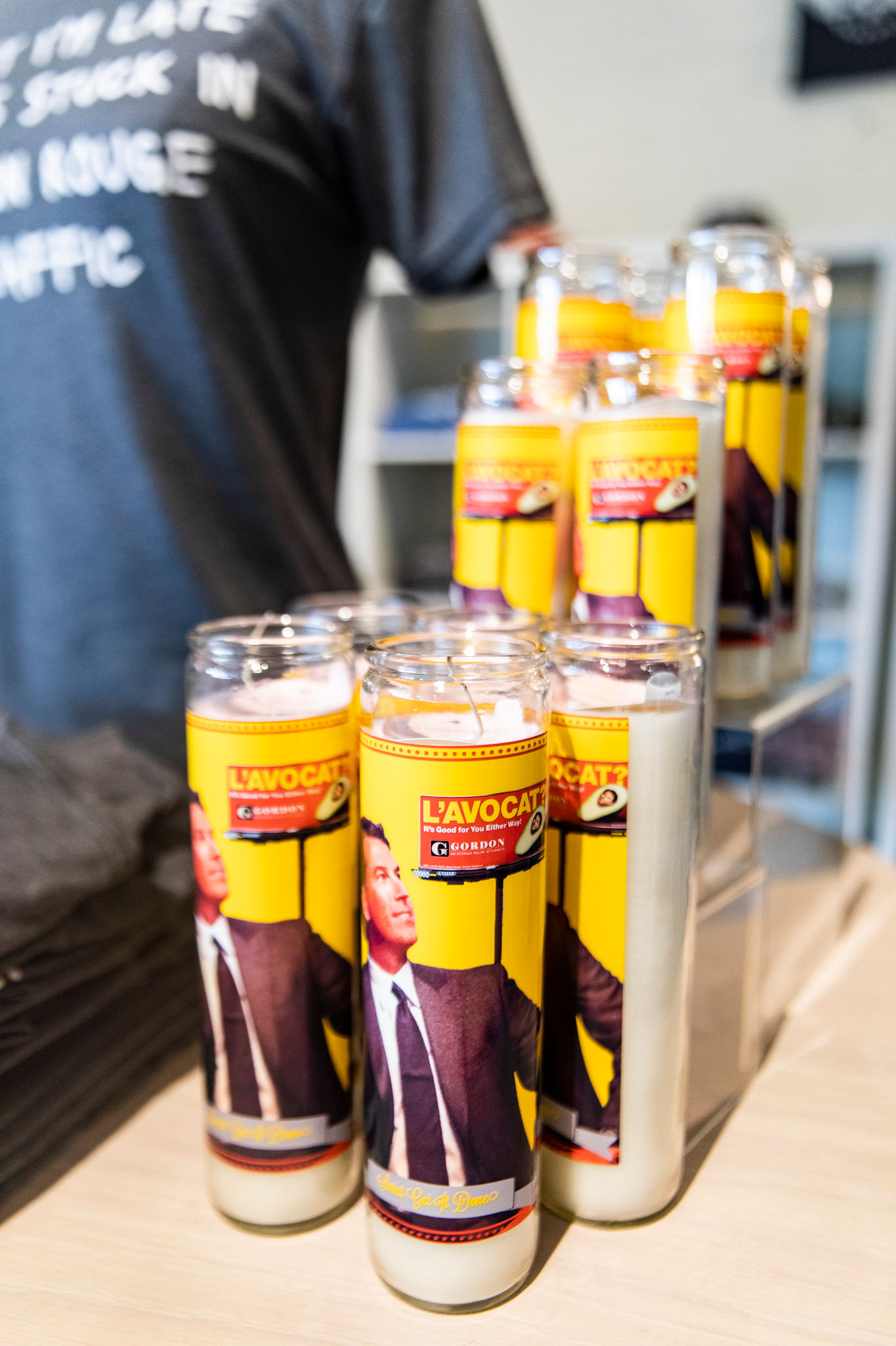 Inside the new location, shoppers will find Fleurty Girl staples like soft t-shirts, shelves of candles, funny dish towels, cook books, door hangers, stationery and pretty much everything else. Of course, Haydel had to add a few more Baton Rouge-themed items to the store, like Mid City shirts, purple and gold sequined jackets and even a prayer candle featuring Gordon McKernan’s likeness.