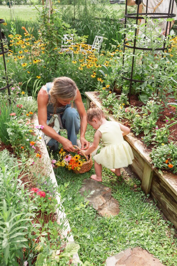 In Pourciau’s lush backyard, even the smallest of the bunch find a place and role in nature. A quick scroll through the This Thyme Gardens Instagram page reveals toddlers picking flowers, harvesting fruit and feeding bunnies. The activities, Pourciau says, not only offer entertainment but plant the seeds for a love and respect of nature.