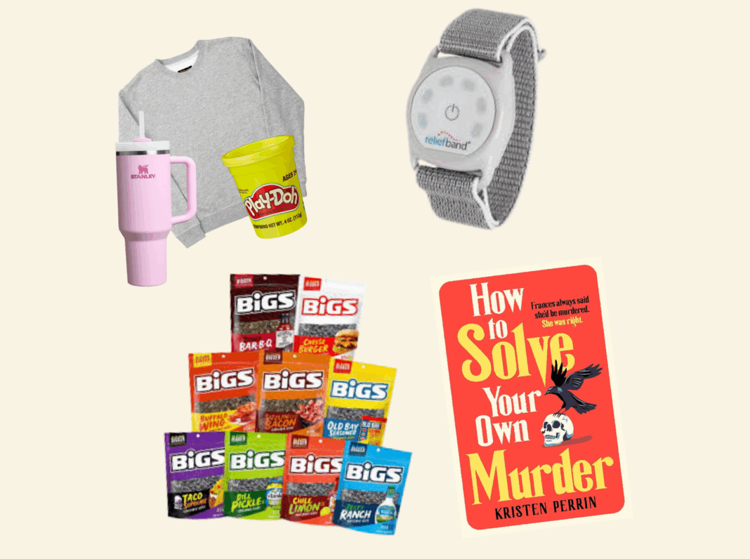 For me, the most important thing is a big cup with a straw. I am still in my Stanley Cup phase, even though I know Owala is the new it-cup. The reason I have for lugging around a giant cup to far-off destinations is a harrowing experience I had while pregnant in a vacation rental in Jackson Hole, Wyoming. The entire house had only mason jars for cups. If you ask me, that is not a proper drinking vessel. After making my husband run to the nearest store to acquire a satisfactory cup, I vowed never to travel without one of my own. Beyond that, my only other non-negotiable is a sweatshirt. Even if I’m going somewhere tropical, a sweatshirt is necessary. Not only does it provide warmth if you need it, obviously, but it can also serve as a pillow. Bonus points for the fact that it can simply be tied around my waist instead of taking up the valuable bag real estate that is reserved for my kids.”