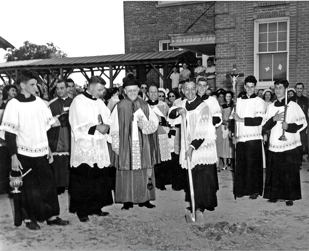 The parochial school system in Baton Rouge was the vision of Monsignor Francis Gassler, who began his mission with the teaching of catechism classes in a “ramshackle building” downtown. Passing on the task of establishing a school in the new parish to his assistant, founding pastor Monsignor Dominic Blasco, the two-story, Italian-inspired building was constructed and ready for students a year after the parish’s accompanying church.