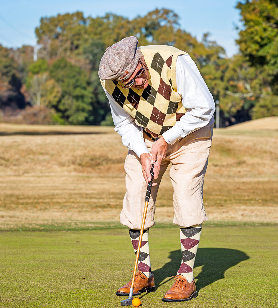 These traditions are part of the sport’s charm. Many hickory club enthusiasts dress the part of 1920s-era golfers with knee-length knickers, argyle socks, sweaters and caps, Spring says.