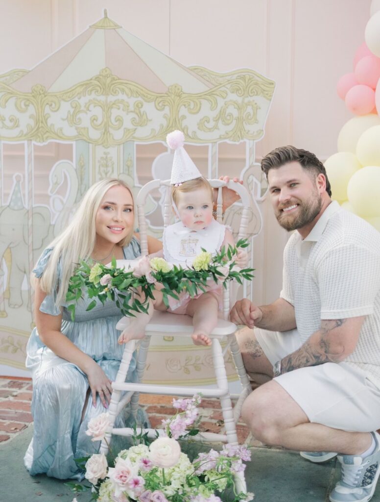Parents Jordan and Dustin Johnson with daughter and birthday girl Krew.