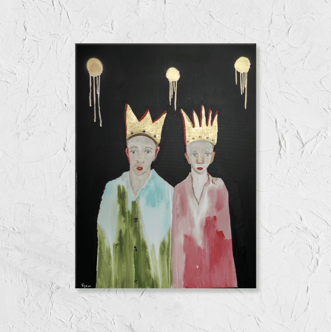 Paul McCartney was spotted at Saba. Or was it Commander’s Palace? Or both. Maybe. It’s the day after New Orleans hosted the Super Bowl, and a large serving of America’s cultural elite, and while the former Beatle lays on everyone’s lips, welcoming gallery staff, photo equipment and visitors into the ESOM Gallery on a tree-lined stretch of Magazine Street is the doe-eyed and laurel-wreathed face at the center of a saintly, gold-splashed canvas leaning on the shop stoop like a nosy neighbor that has a story to tell.