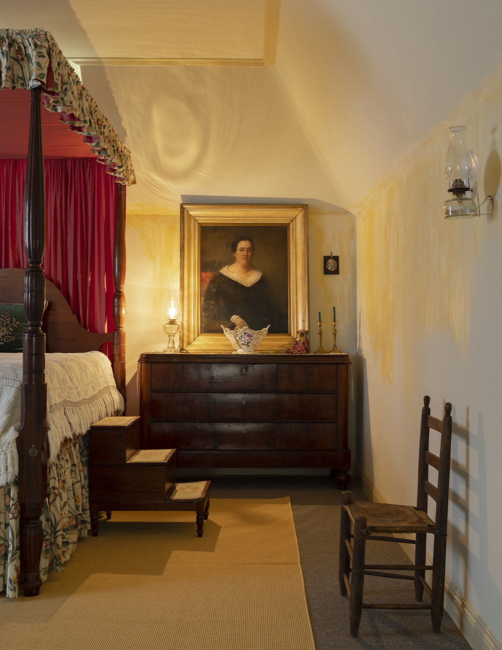 Meanwhile, Jeremy and Lindsay were continuing to write their own story at home by conjuring rooms as immersive as a Disney attraction. An empty guest bedroom upstairs became the perfect canvas for Jeremy to create the look of an old plaster and bousillage house as it would have looked in 1880s Louisiana. This “time capsule” space, with its walls carefully faux finished by Jeremy, contains a mix of fine antiques and more primitive and practical pieces. “I was initially inspired after reading a 1928 Scribner’s Magazine describing an old Creole cottage in Natchitoches with ‘mud walls,’ also known as bousillage,” Jeremy wrote in an Instagram post about this room makeover project. “In this small 18th-century house lived a cousin of my great-grandmother’s.”