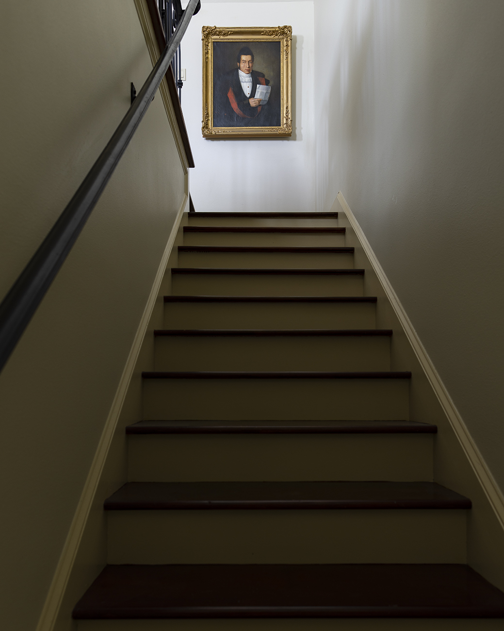 One of the first portraits he acquired was a painting of a Southern lady wrapped in an indigo-colored shawl. “At the time, I didn’t know what time period it was from, but I knew it was old,” he says. After the purchase, he learned that the original frame had been replaced, making the painting less valuable. But, he felt a connection to the portrait’s subject nonetheless, and the work still holds pride of place among the many he has since amassed.