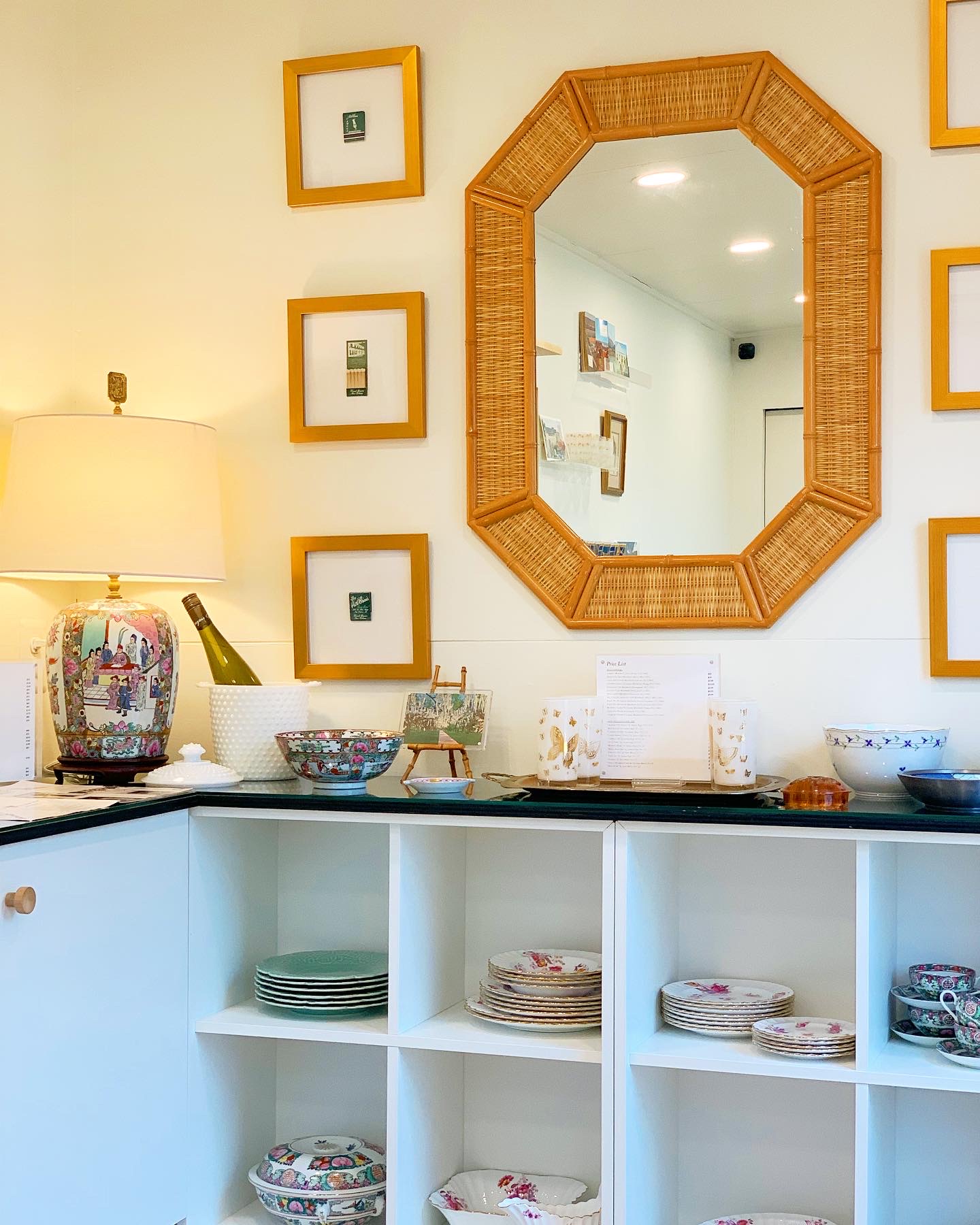 “People may not know what to do with something like my vintage matchboxes, so by putting them in frames, I like to show people the different ways you can utilize vintage items in decor. I like to get people excited,” says McMills.