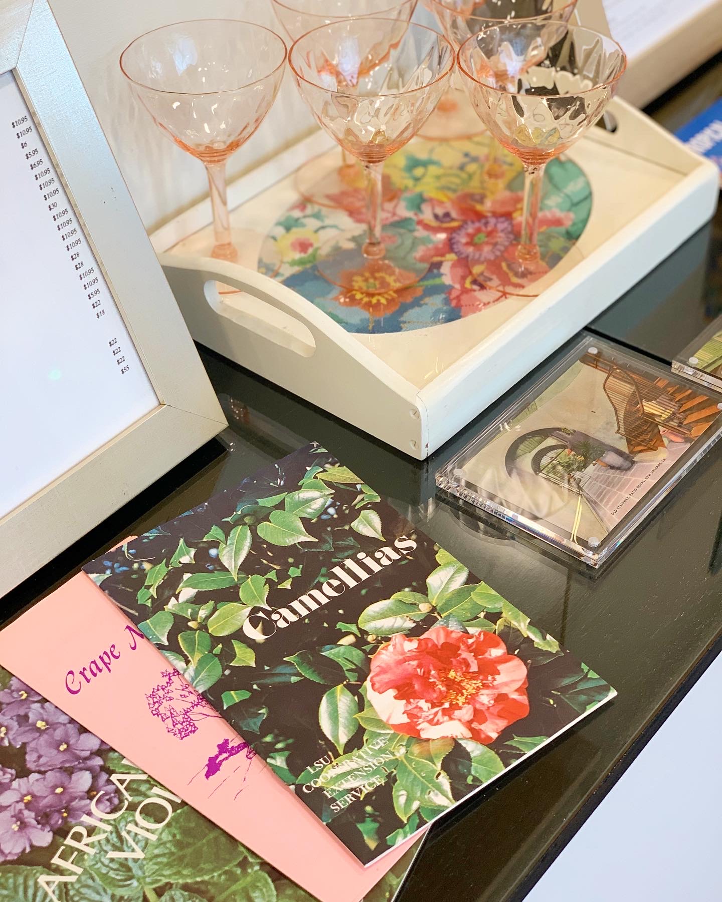 Visitors to Social Graces Vintage can expect to find a diverse selection of vintage items, including high-end dinnerware, unique glasses, and antique paper items like books and postcards. McMills also has a passion for locally inspired items, as seen in the shopette’s stock of vintage maps of New Orleans and Baton Rouge, and even a vintage book on the Louisiana folk hero Evangeline. “I’m not going to put anything in here that I don’t personally like,” she says.