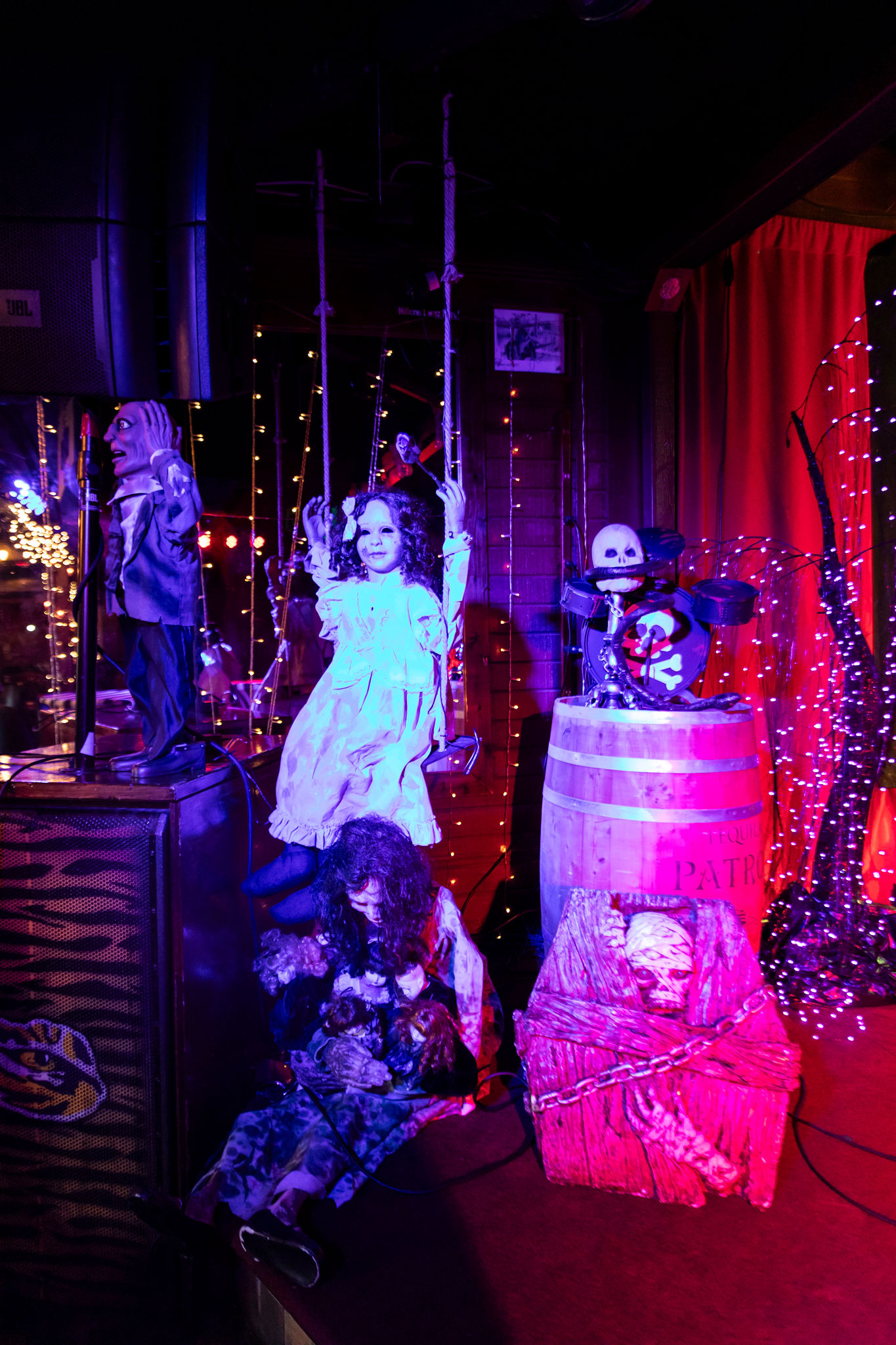 The 5,000-square-foot bar is decked out with decorations straight out of a horror film. Ghastly monsters lurk around every corner of the bar and each section has its own theme, like a carnival area filled with not-so-friendly clowns and a Nightmare Before Christmas-themed room complete with a towering Jack Skellington figure that had to have its legs cut down in order to fit in the building.