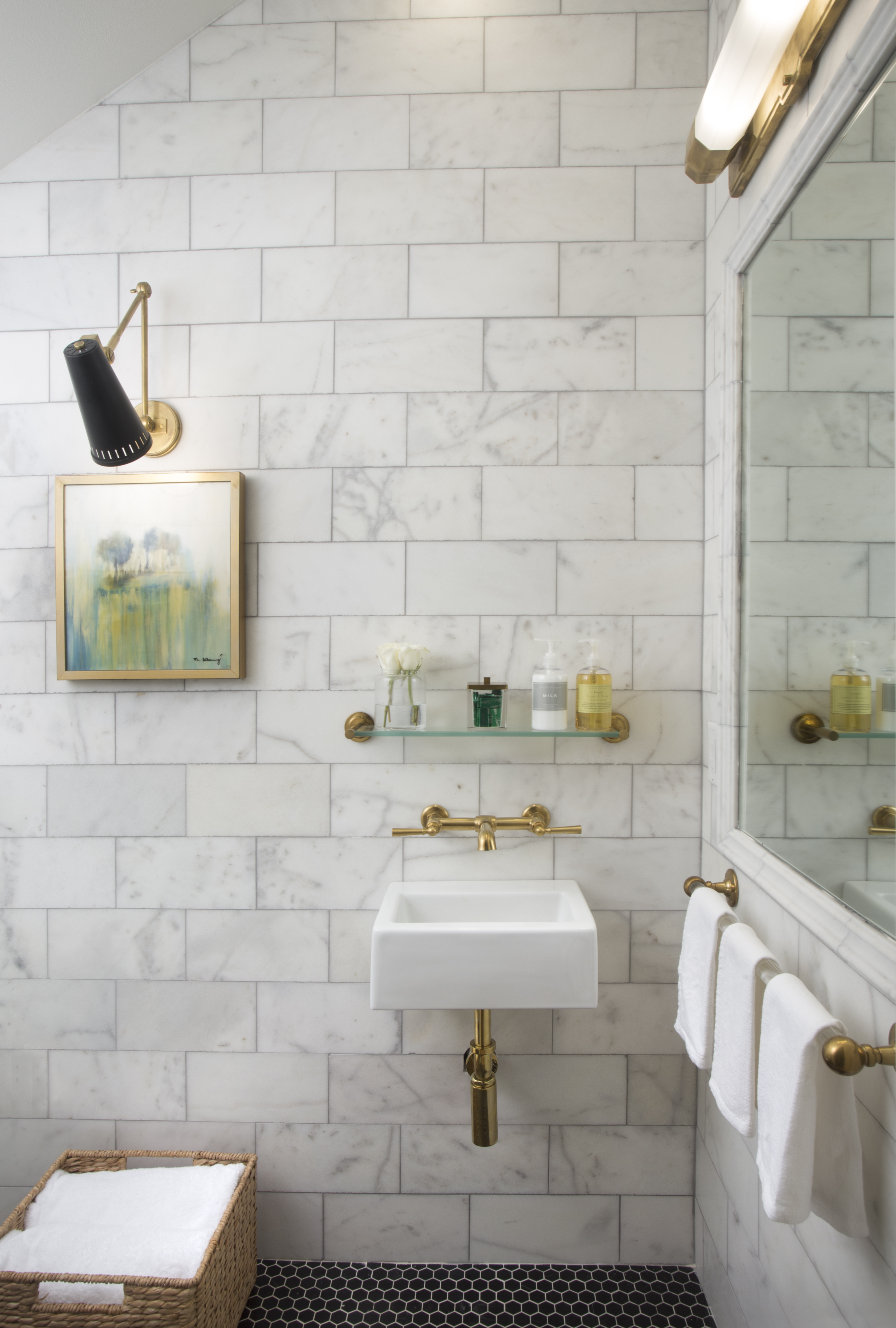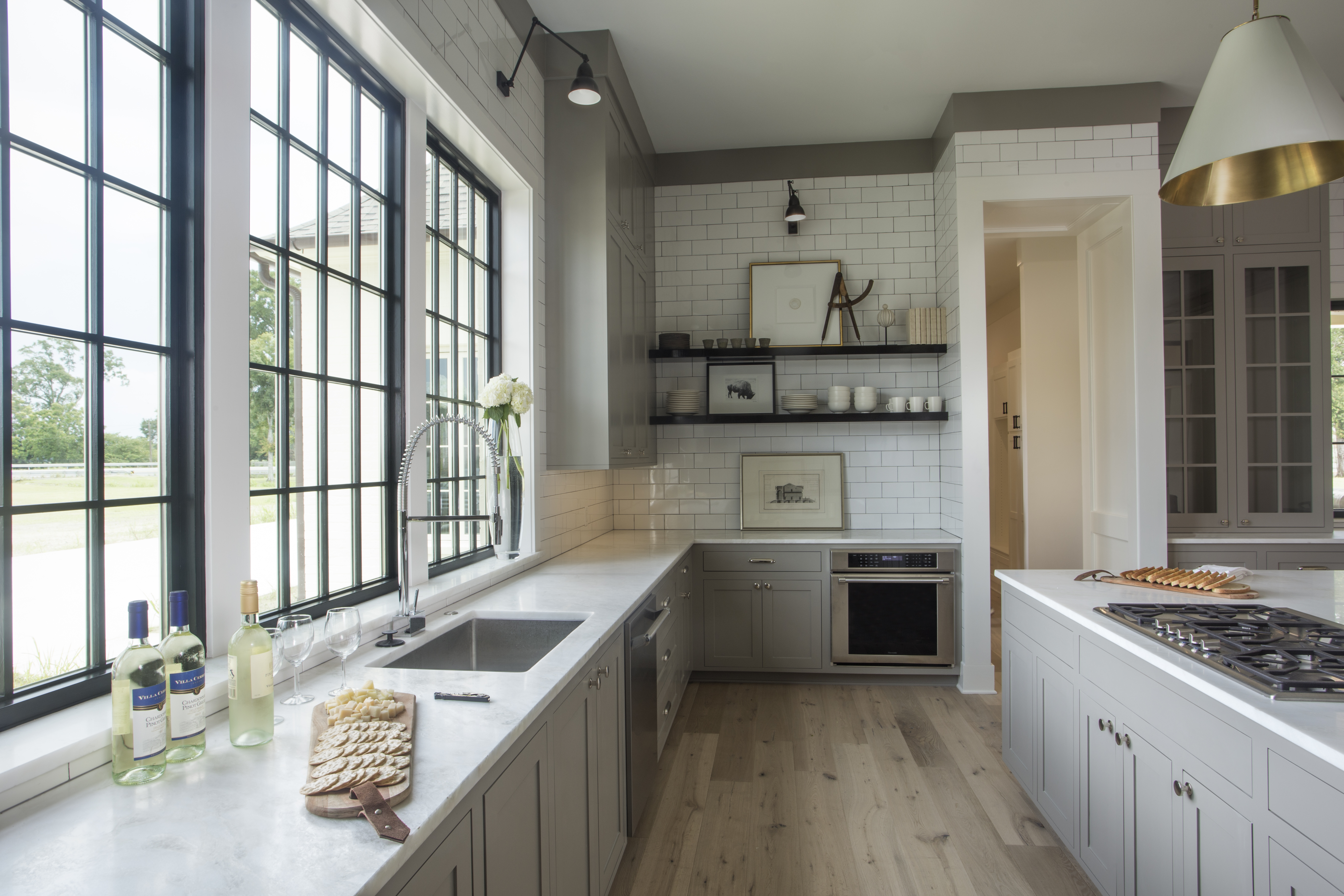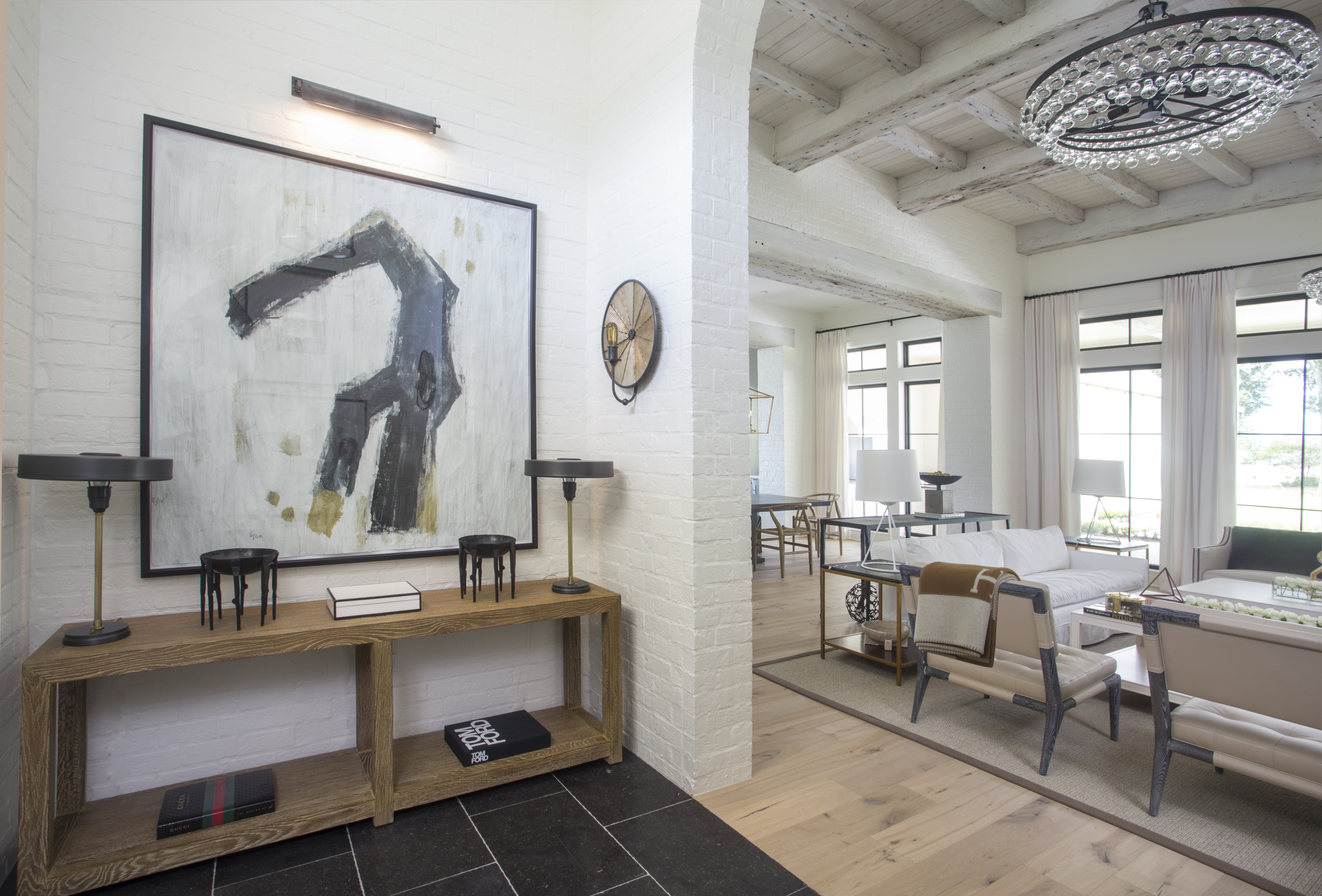 “It is traditional but not in a boring, expected kind of way. It is modern too, but not in a formulaic one-dimensional, everything white-on-white kind of way,” says Larkins of the project which incorporated elements like 200-year-old salvaged beams and white-painted brick walls that helped to give the newly constructed home character. “This project was a blast to design for clients who have great tastes and who trusted my judgment to create something truly unique and timeless.”