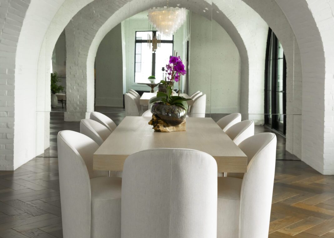 When designing this home, design professional Jeff Taaffe, architecture firm Hollingsworth Design and RMB Builders wanted the dining room to capture attention as soon as guests walked in the front door. “The groin vault was a perfect fit for this space because it’s a symmetrical, four-sided design element,” Taaffe explains.