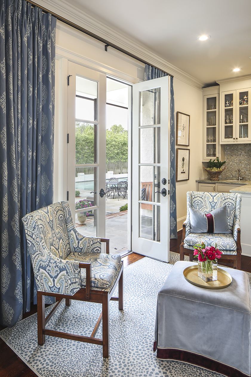 Blue botanical curtains framed Frances and Mike Balhoff’s view out into Baton Rouge on their visits from their home in Maryland. During each trip, the couple was surrounded by shades of sapphire, cerulean and navy in the guest room of Mike’s brother Bill’s lakefront home. Perhaps the hue, evocative of Louisiana’s proximity to the turquoise waters of the Gulf of Mexico, came to characterize life in the Capital City. Or maybe the shades came to represent the cloudless skies of a carefree day. Either way, when the Balhoffs sat down with designer Meghann Landry of McMillin Interiors—the same visionary behind Bill Balhoff’s home—following the purchase of their new home off Bluebonnet Boulevard, they were adamant on their chosen color scheme: blue.