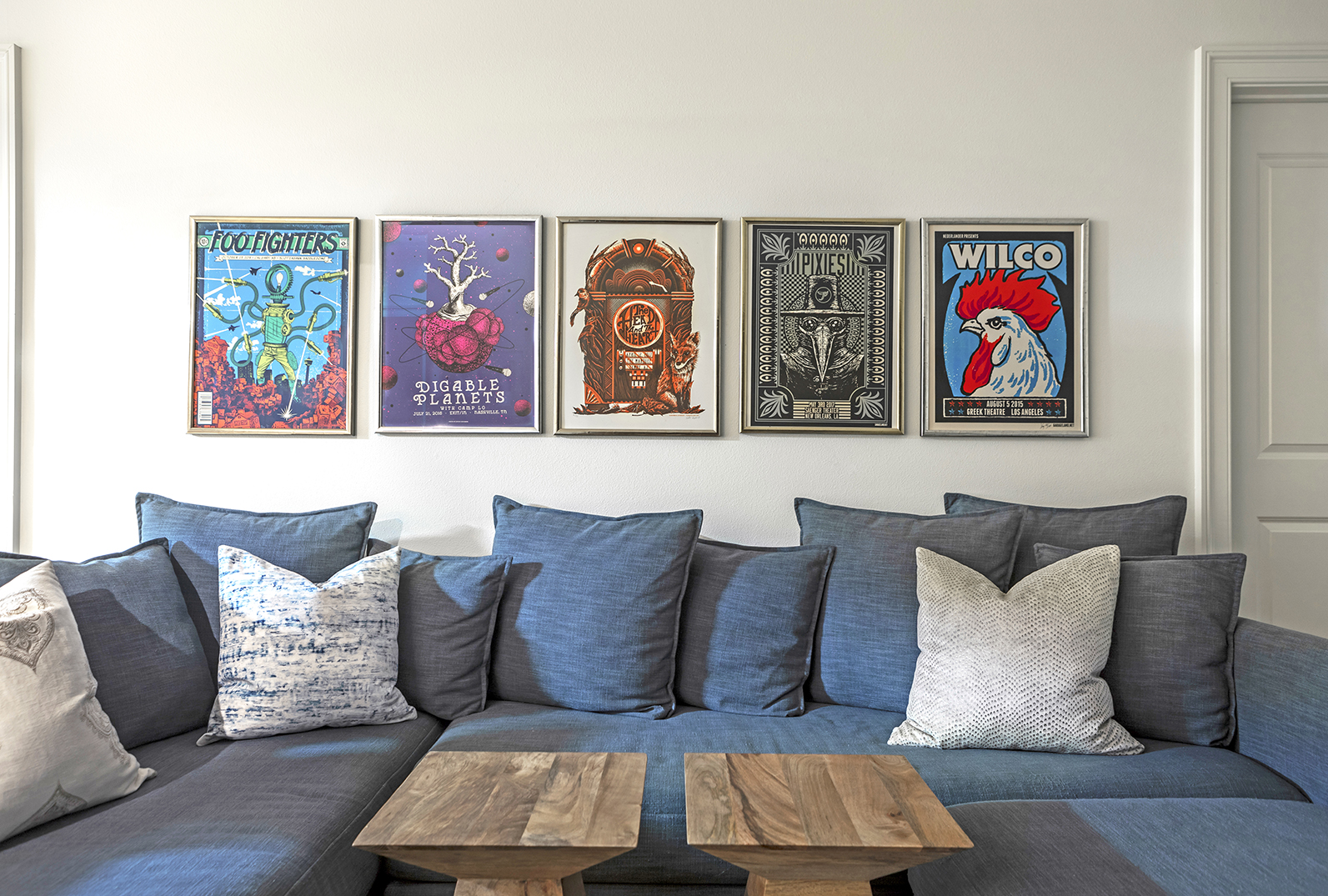 “The homeowners wanted their record collection to be in a central location so they would have easy access,” explains designer Sara Brignac of Workshop 31 Twelve, who worked with the family to personalize each space. “They love to collect things, music being one of them, but also art—local art especially.”