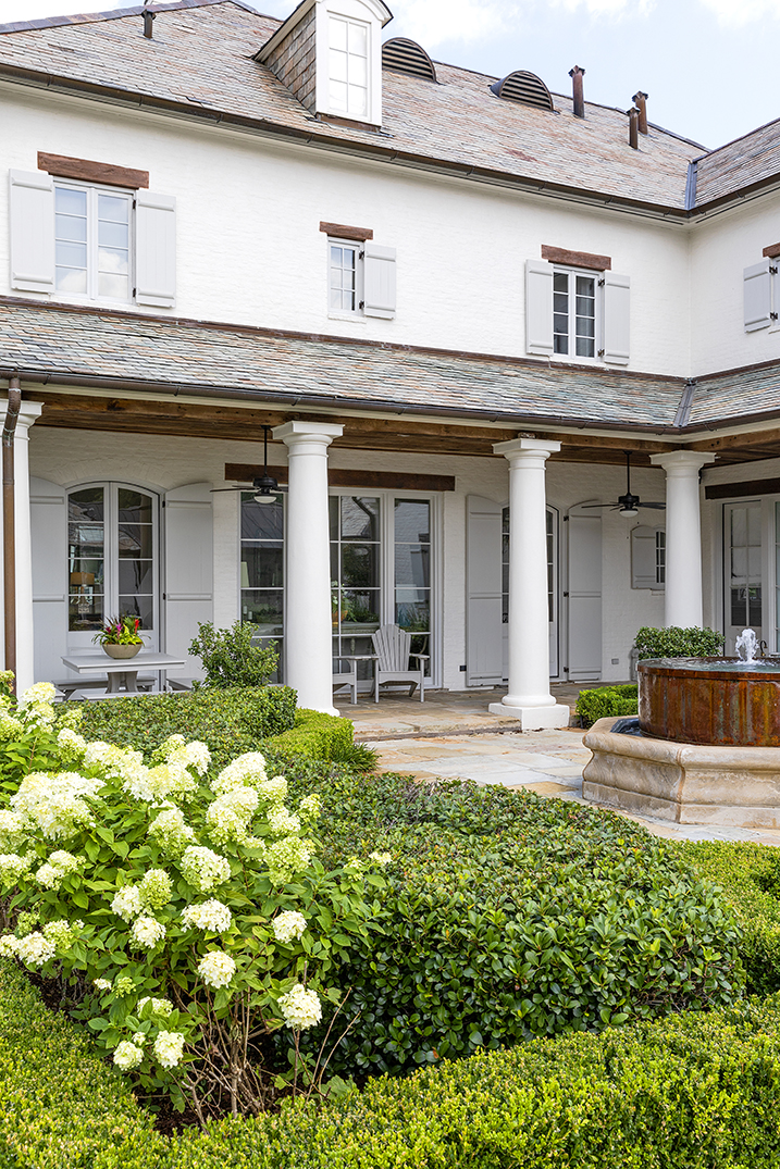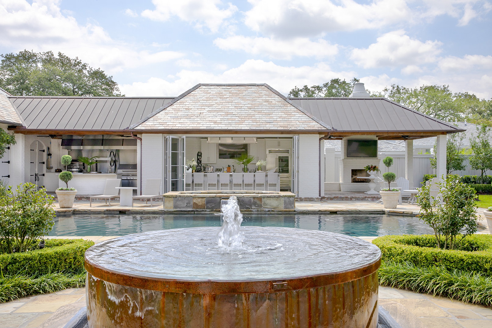 The completed outdoor kitchen and dining space, located just beyond a formal garden and pool in the backyard, are frequently in use. Parties range from pizza nights with their three children and five grandchildren to holiday happenings with out-of-town relatives. “Wayne and I love to entertain, and we prefer smaller, more intimate gatherings with friends and family,” Luci says. “Our entertaining is always casual and relaxed.”