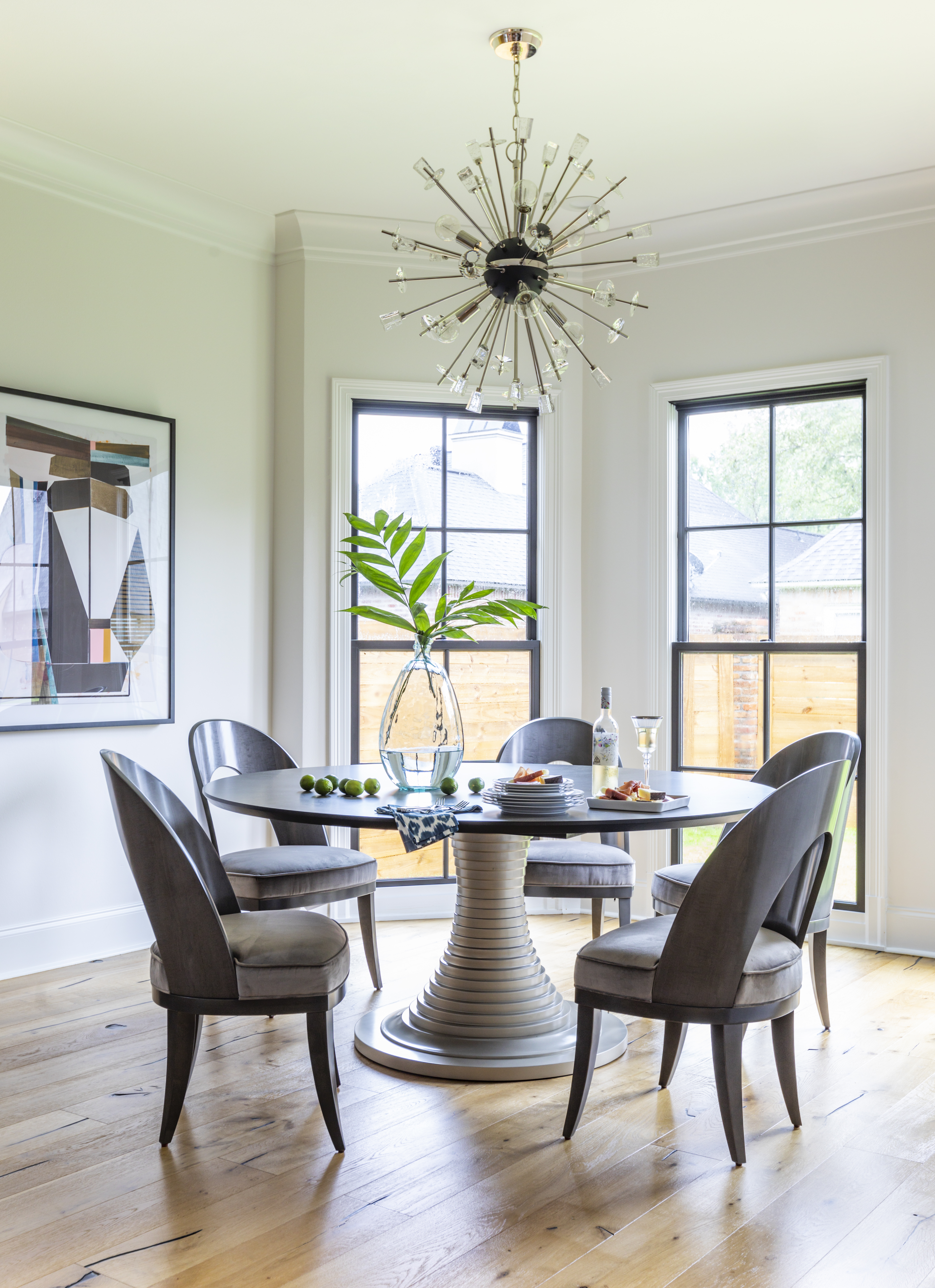 A facelift featuring Sherwin Williams’ “Natural Choice” paint and dark bronze-hued aluminum-clad windows made a big difference on the home’s exterior. Inside, scaling down proved to be easier than expected. “We lost 2,000 square feet from our previous house, but we really use all of the space we have now,” Bellizaire says. “That’s why I spent so much time on the floor plan.”