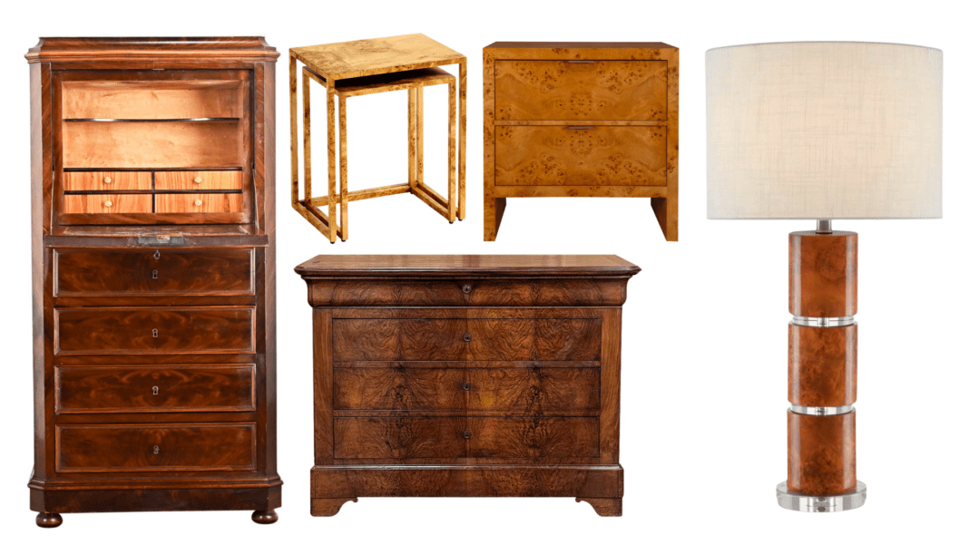 From light to dark and antique to modern, the uniqueness of burl wood makes for eye-catching furniture and accessories.