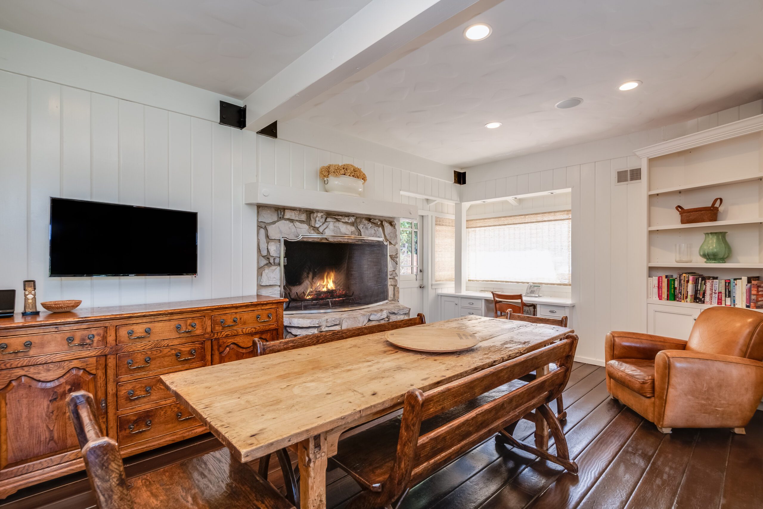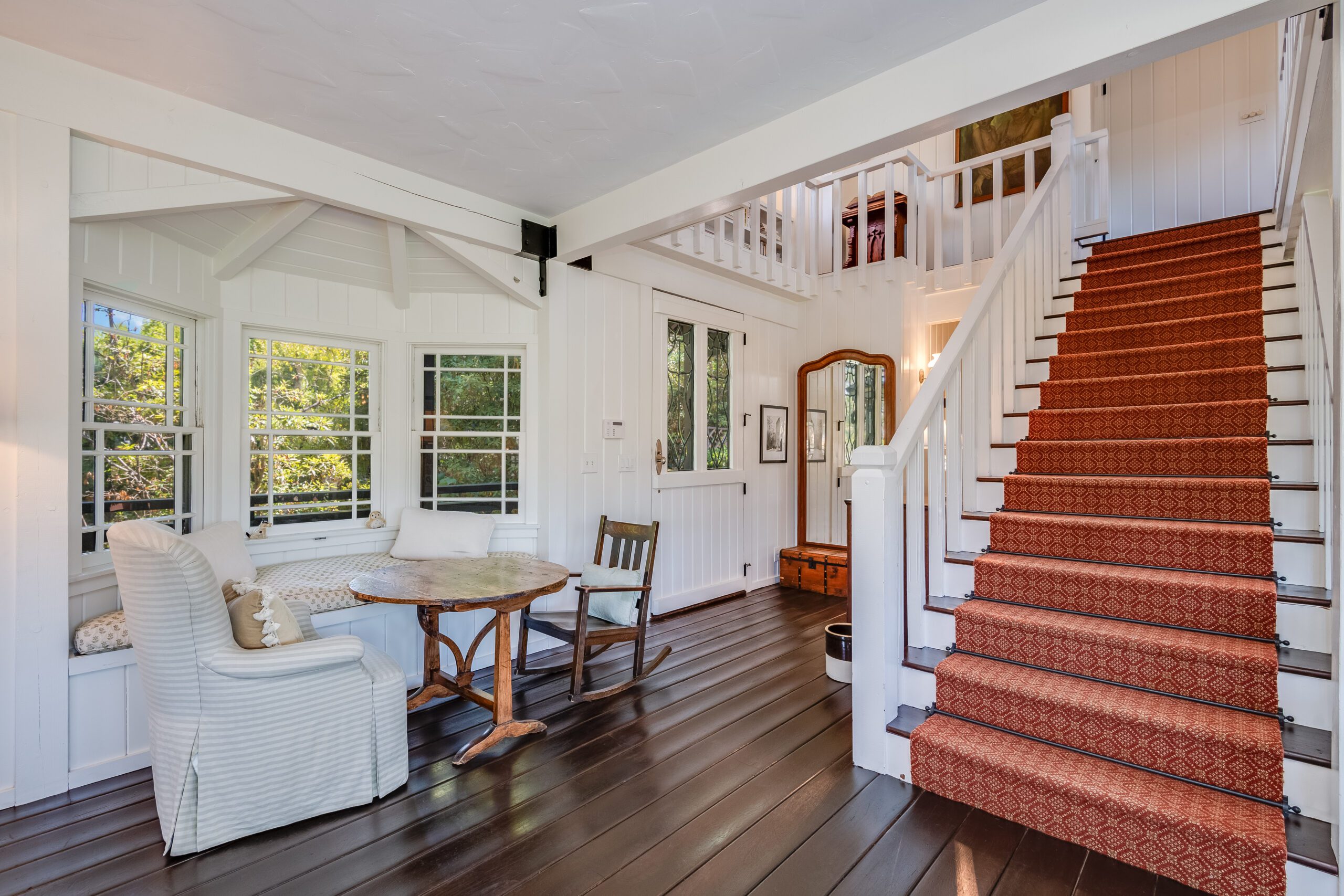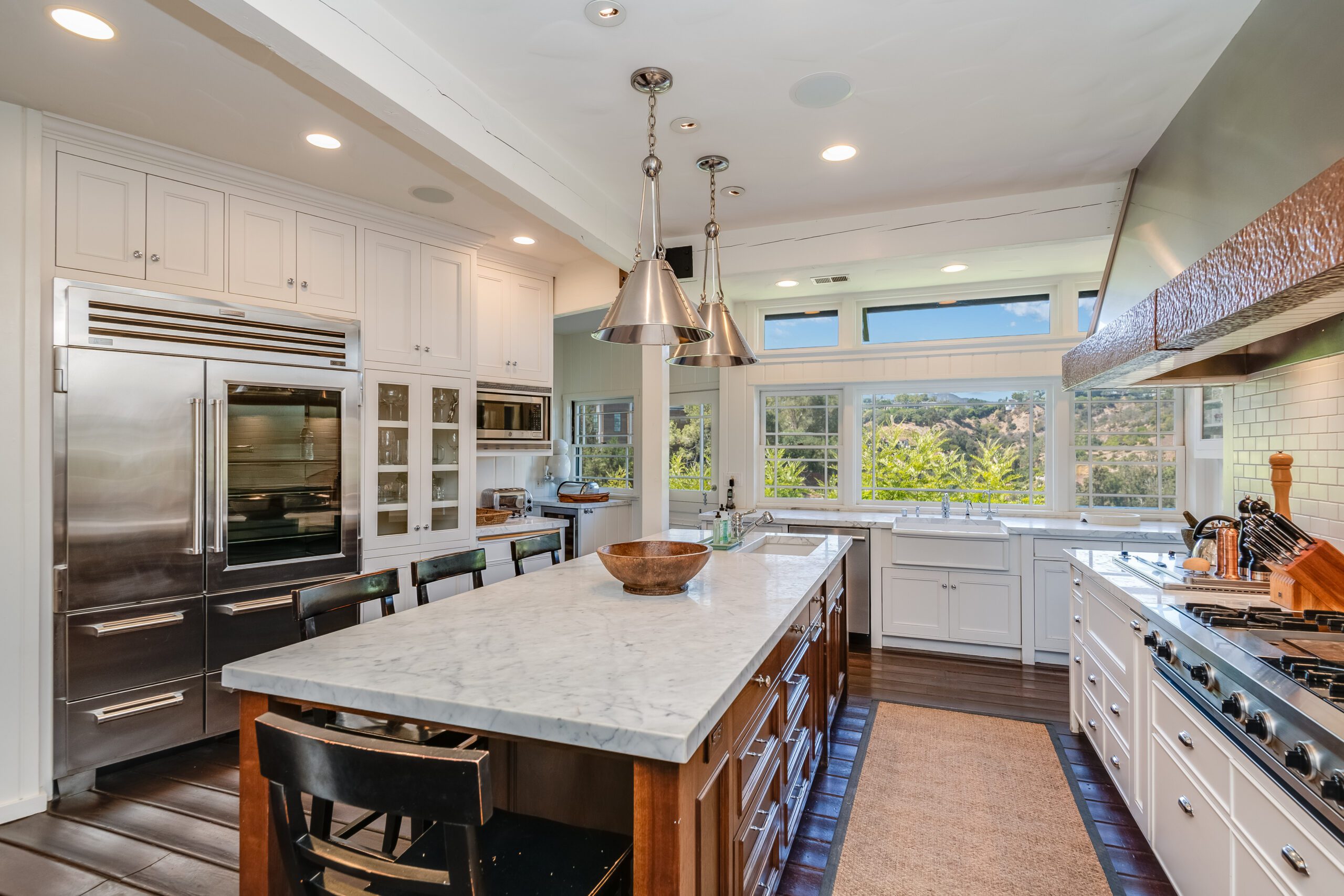 Purchased 25 years ago for $3.3 million, the three-story, 5,3000-square-foot residence includes five bedrooms and five bathrooms. The contrast between the dark Douglas fir and the sleek, clean lines creates a stunning rustic chic aesthetic filled with decor that pays homage to Old Hollywood.