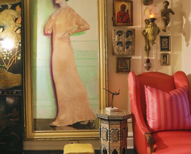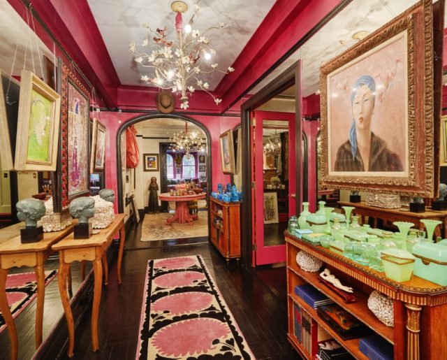 Her former apartment, built in 1931 near the East River on the Upper East Side of Manhattan and listed at $1.12 million, holds an eclectic collection of intriguing architectural elements and artwork covering nearly every inch of wall space, leaving almost zero spots unclaimed by framed paintings and family portraits. Gloria called this space home for 23 years, though the style certainly finds a home in many aesthetics and decades. As Gloria told New York Magazine in 2018: “What is beautiful to me may not be beautiful to someone else.”
