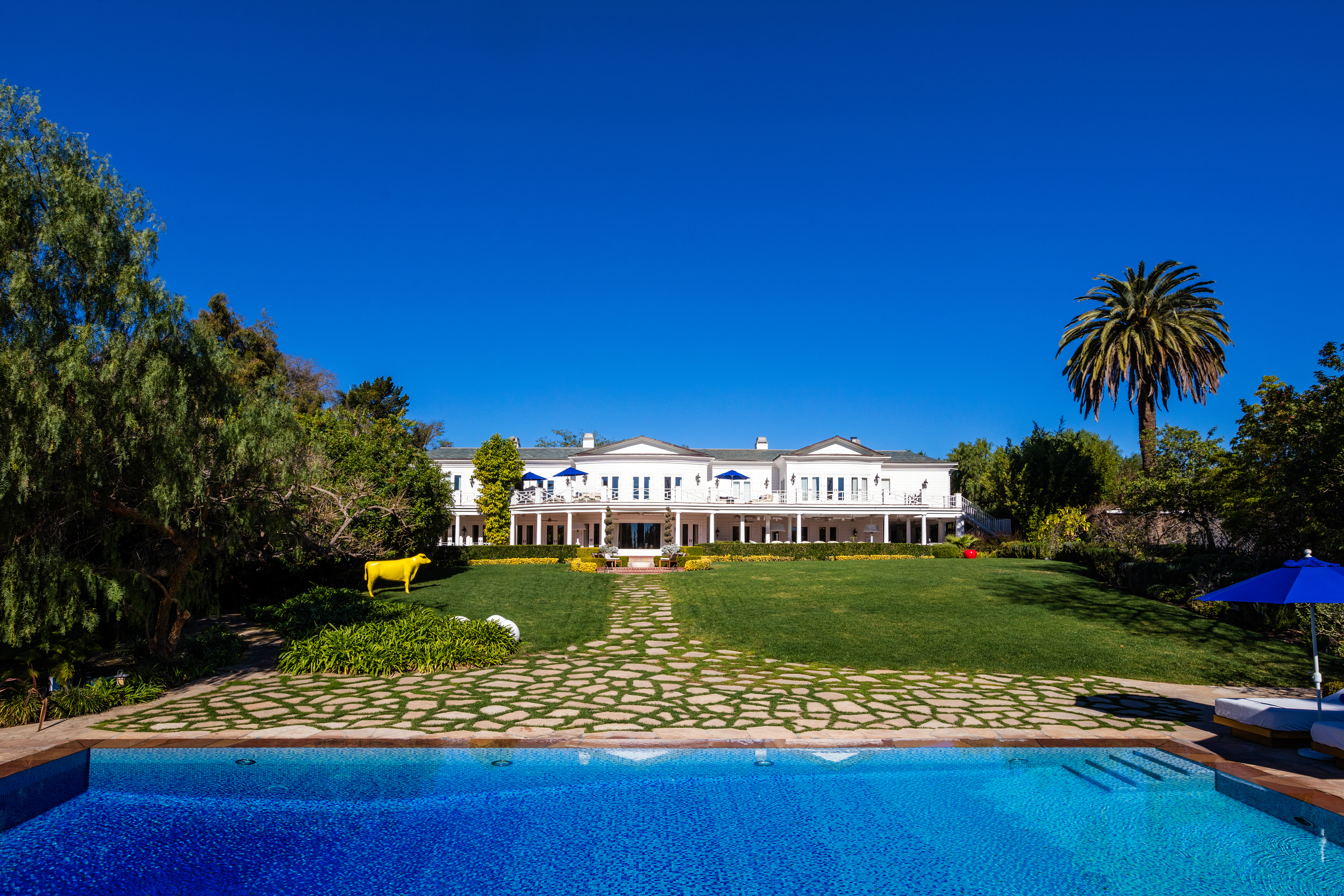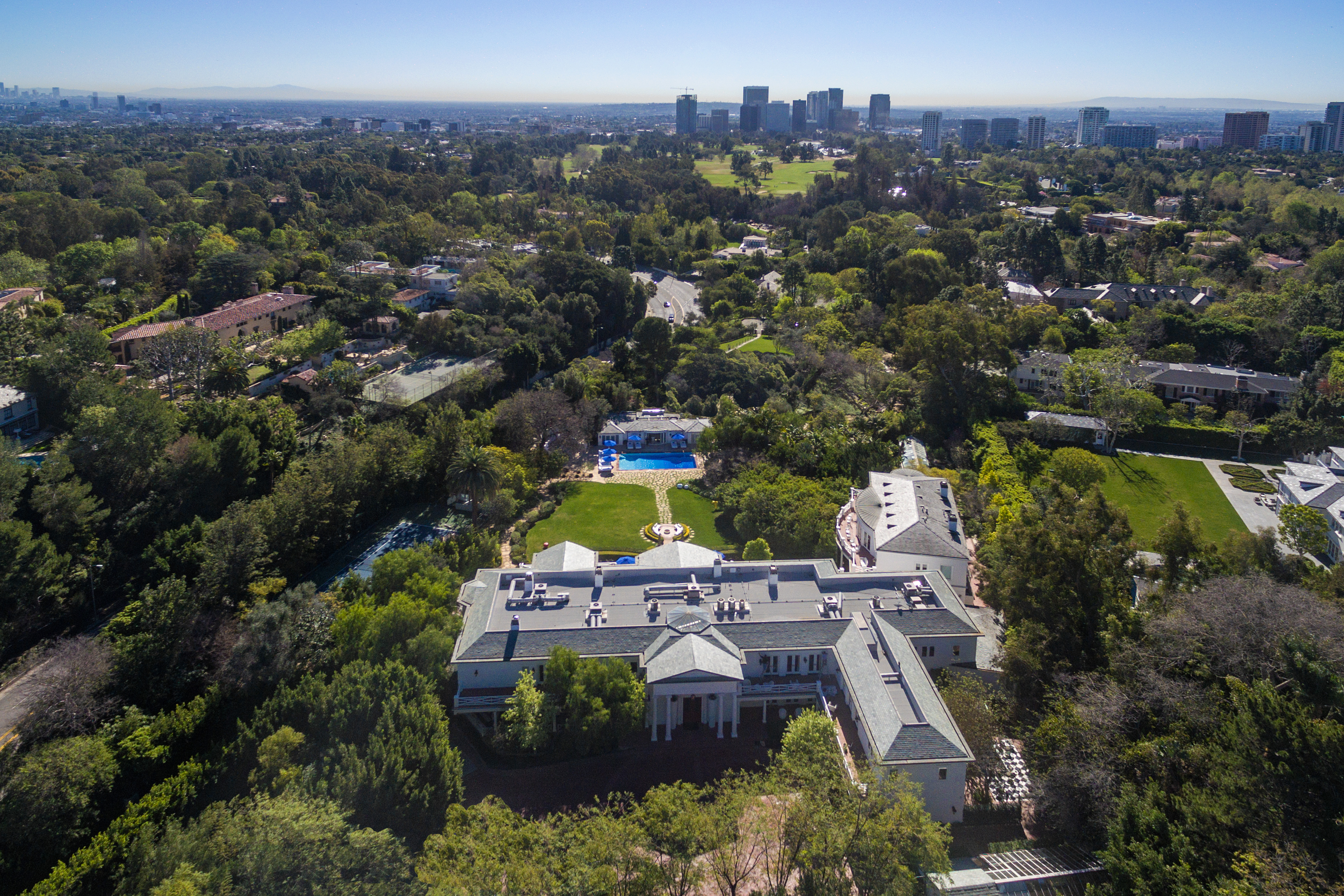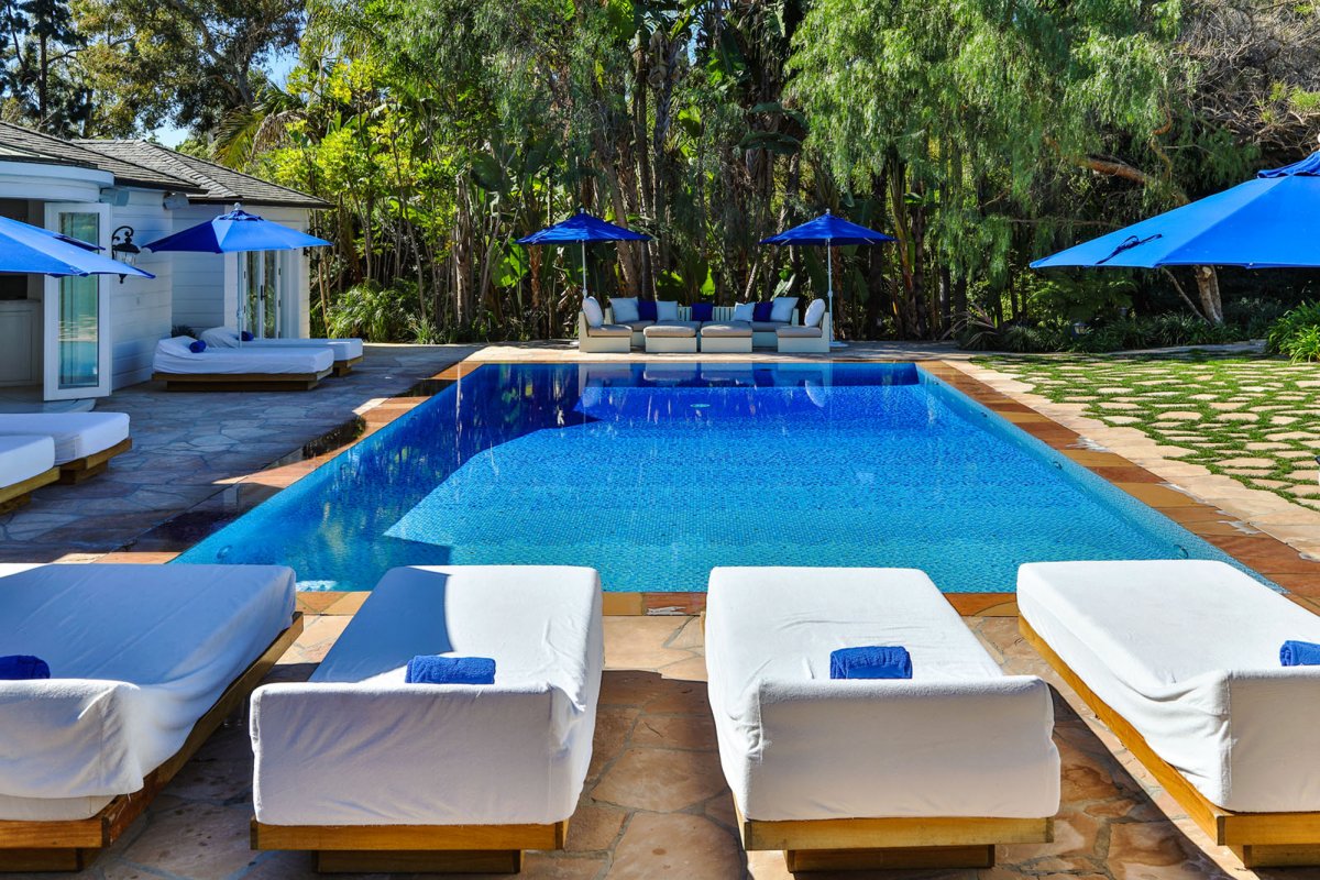 The Maison Du Soleil, a Holmby Hills mansion once owned by fashion designer Max Azria—whose influence still reigns in Hollywood in spite of his passing in 2019—is back on the market for a whopping $88 million. The architect Paul Revere Williams–lionized for projects like the Beverly Hills Hotel and residential designs for Golden Age luminaries like Lucille Ball and Frank Sinatra–designed the grandiose estate in the 1930s. With 30,000 square feet, this Sunset Boulevard home is never short of space, featuring 60 rooms plus a tennis court, a pool and pool house, a 6,000-square-foot movie theater, a fitness center and a bountiful supply of patio space in which to admire the gardens surrounding the estate.
