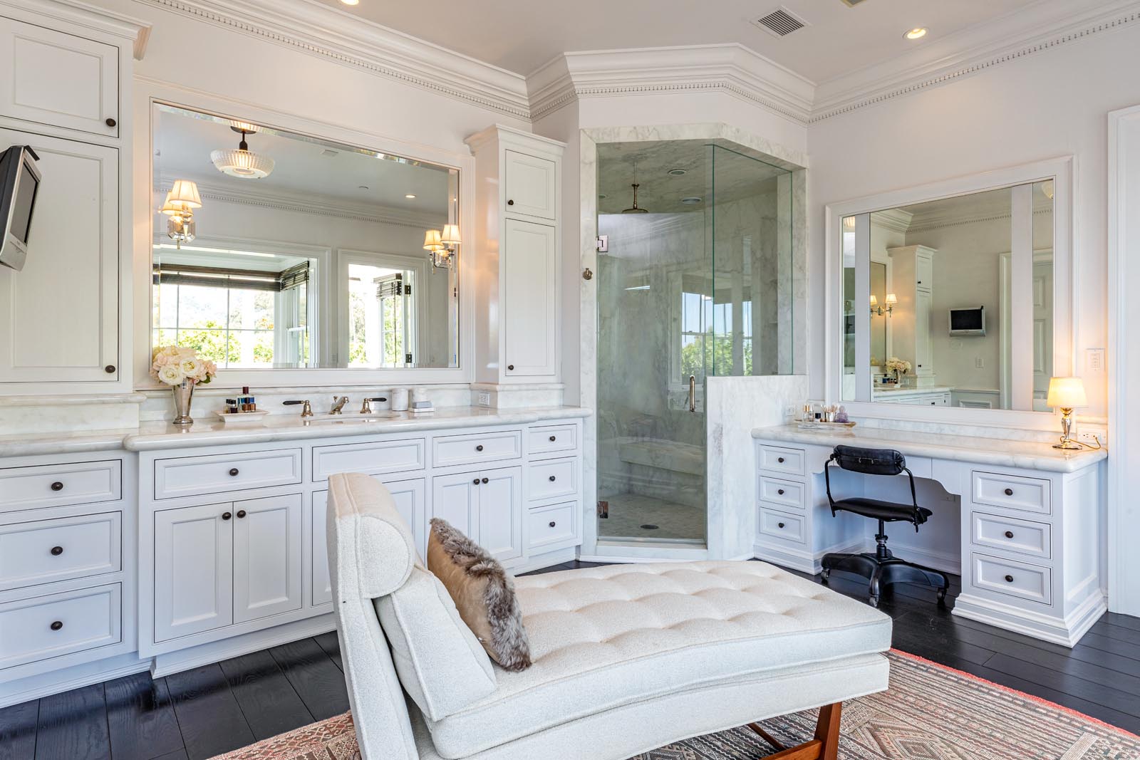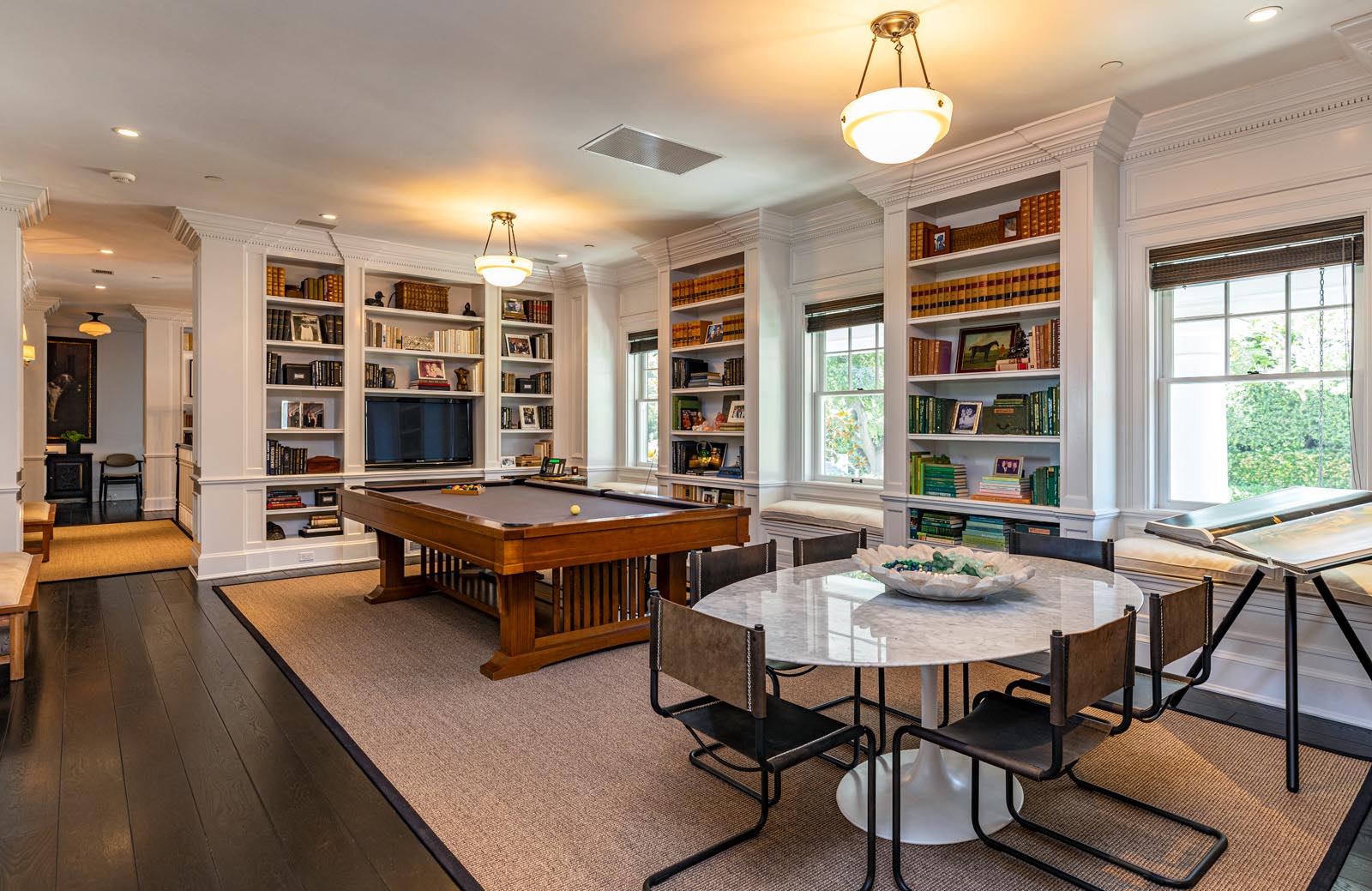 Drawing inspiration from the historic homes on the country’s opposite coast, the exterior and interior of this mansion speak to a sophistication known in a different time despite being built in 2009. In contrast with the ultra-modern designs of neighbors like Gwyneth Paltrow, Lowe’s home effortlessly mixes ornate moldings, mantels and fixtures with warm leather, wood tones and furniture that actually looks like it would suit an afternoon nap or a family Christmas.