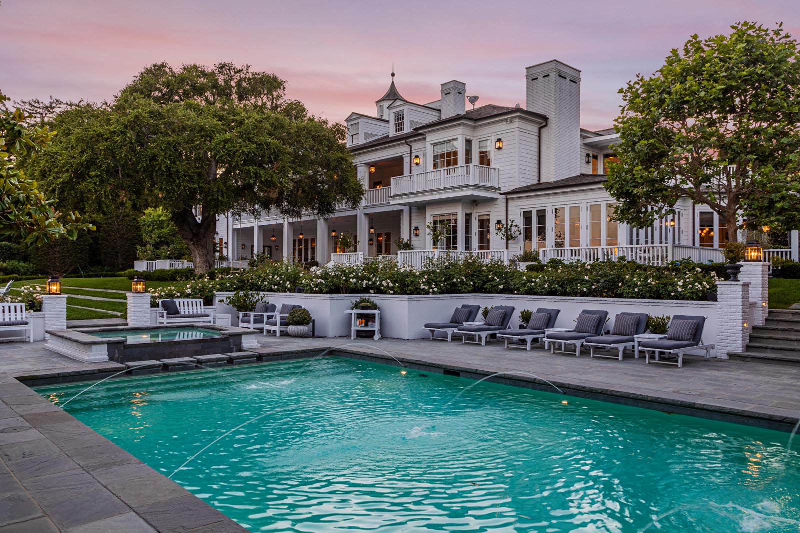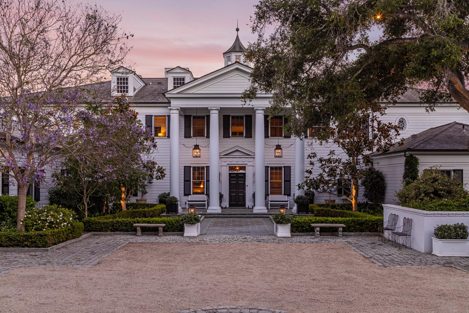 In the star-studded Montecito community in Santa Barbara, California, Rob Lowe and his wife Sheryl have just closed on a deal that ends a two-year search for a buyer for their East Coast-inspired mansion. Selling for a whopping $45.5 million, the 10,000-square-foot home sits on 3 acres and boasts 20 rooms, including a wine cellar, several formal dining rooms and a movie theater, in addition to a guest house, tennis courts, staff quarters and more. However, while the sheer size is show stopping in itself, the style of this home is what shines.
