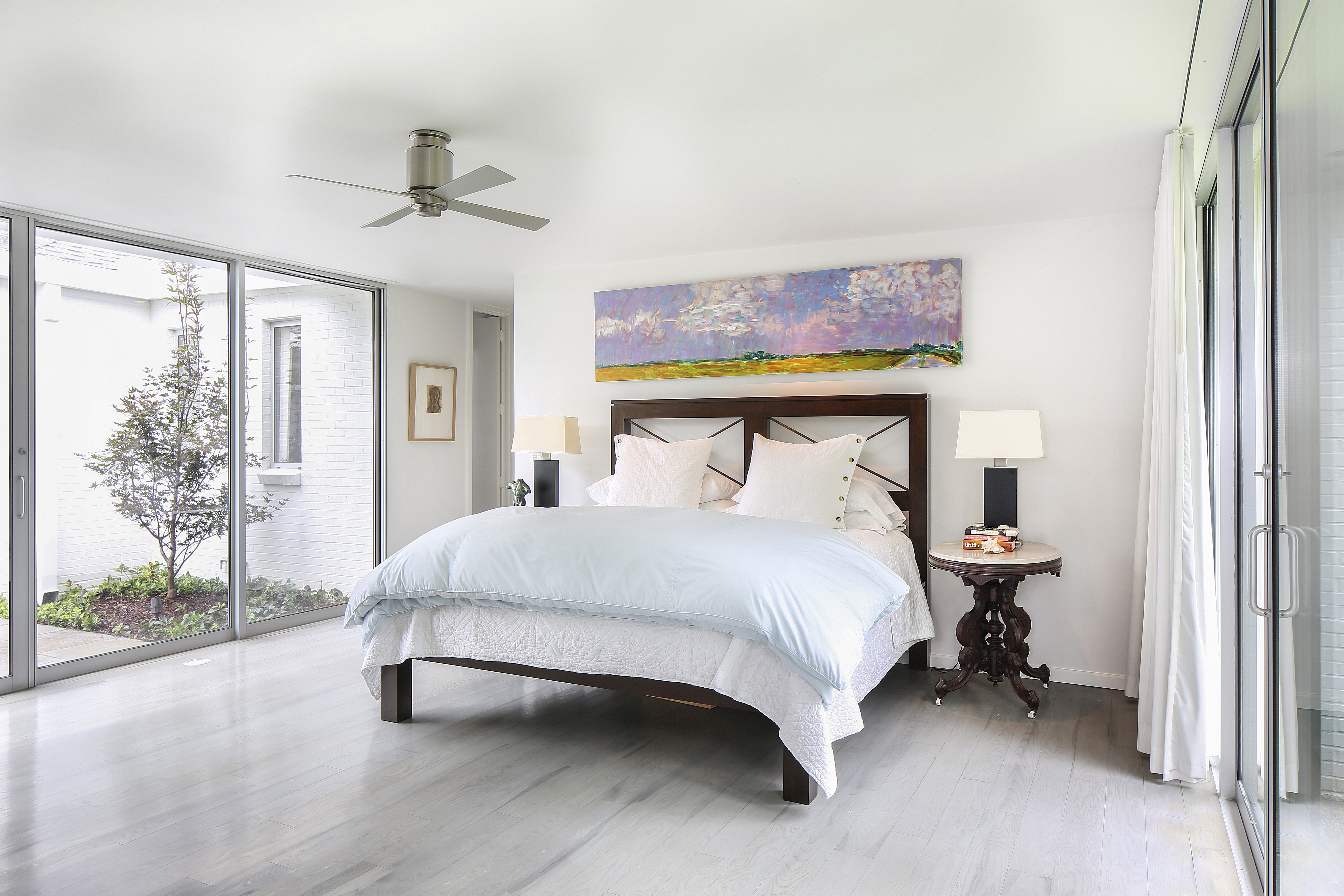 And where others see only problems, Price and Jim recognize potential. They have a long history of wielding sledgehammers and ripping a place to the studs. This is the fourth home refurbishment for this duo; albeit the 18-month renovation proved to be the most extensive they’ve tackled so far. They tore through many interior walls to create an open floor plan while many exterior walls were replaced with floor-to-ceiling glass to let in ample light. They took the 3,200-square-foot house down from four bedrooms to two, allowing for more space in the living quarters. And although the 8-foot ceilings couldn’t be raised—the former flat roof is still solidly in place beneath a pitched roof—the entire house reads wide and airy, light and bright.