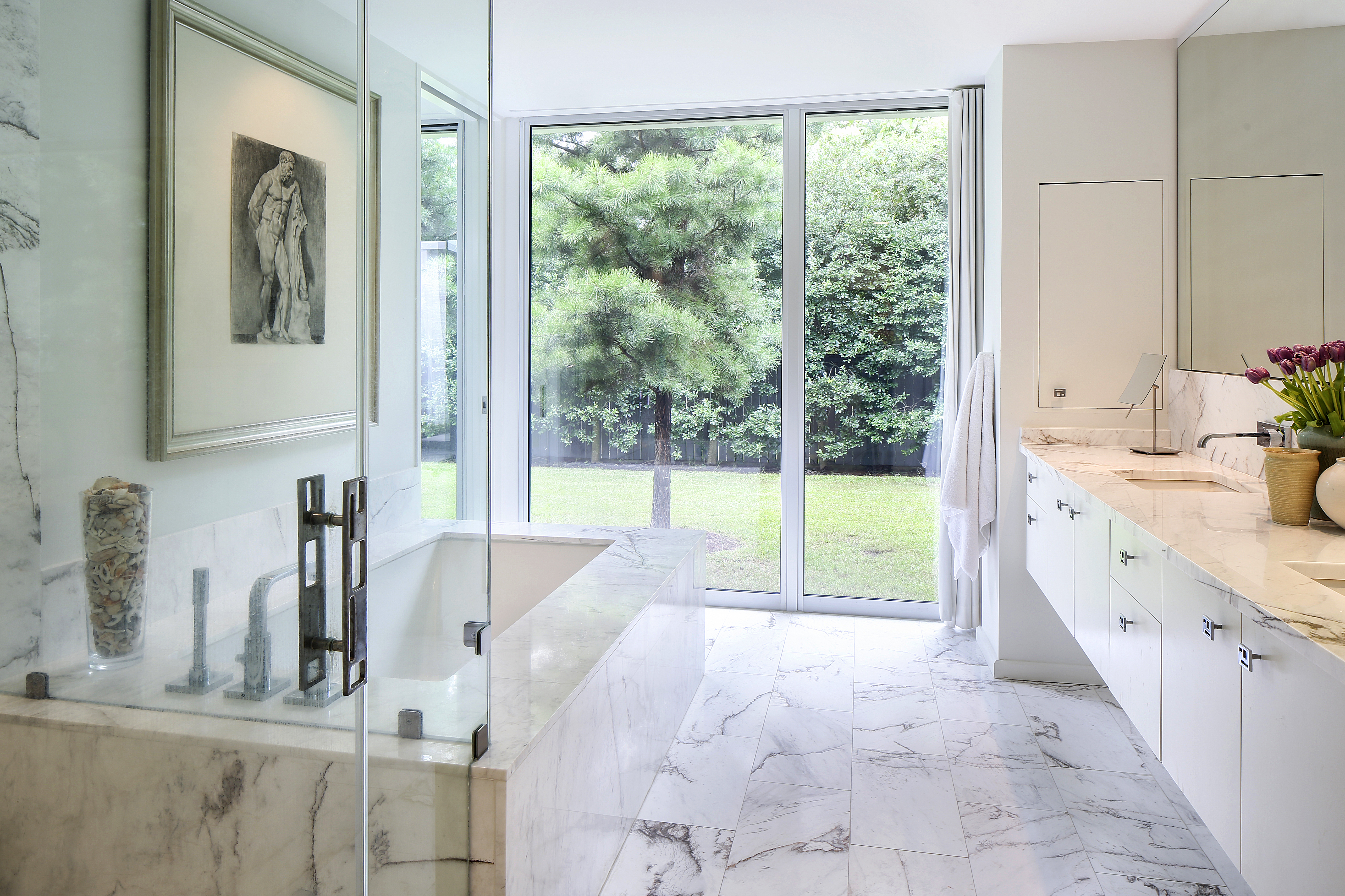 “We wanted to open it up so we could really see everything. We gutted the house, installed glass windows and doors, then we walled up the property to create privacy,” says Jim, noting that the construction of the windows stalled the completion of the project. “We had to get rid of the timeline. Once you get rid of the timeline, then there is no stress.”