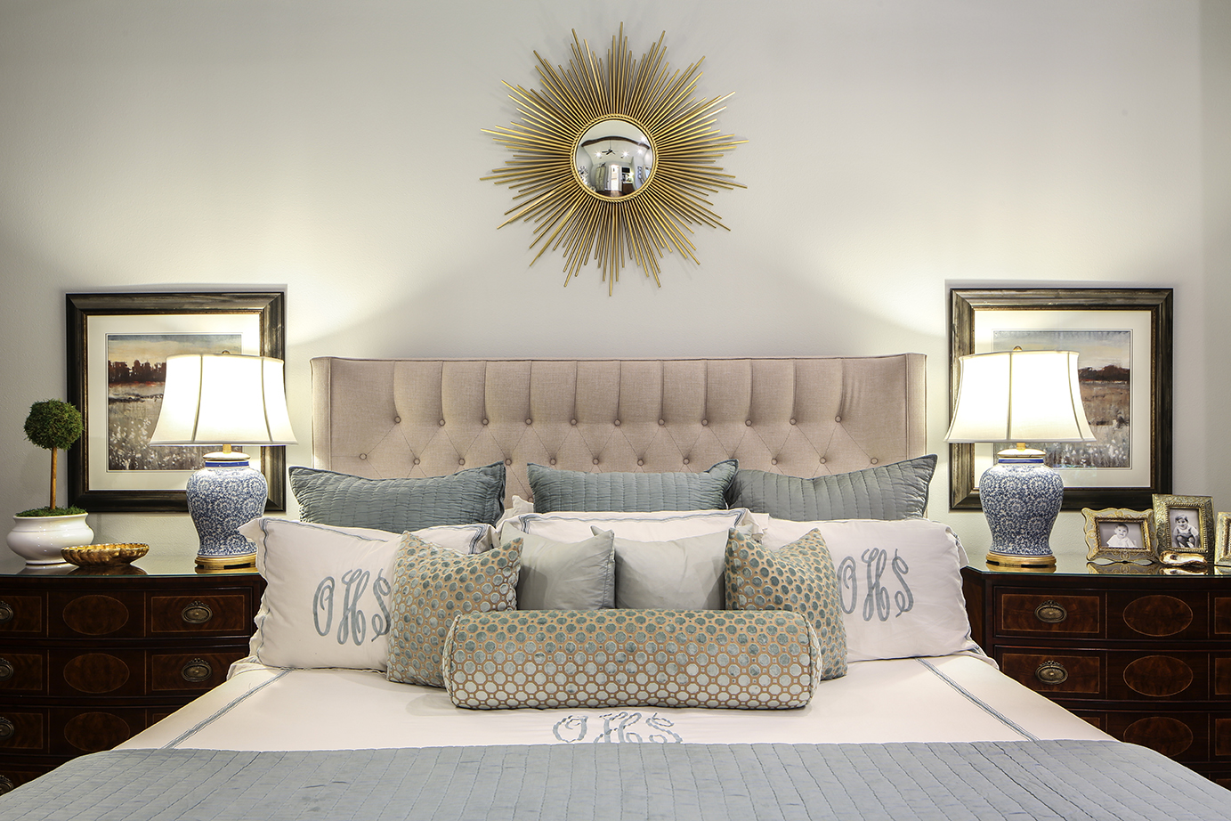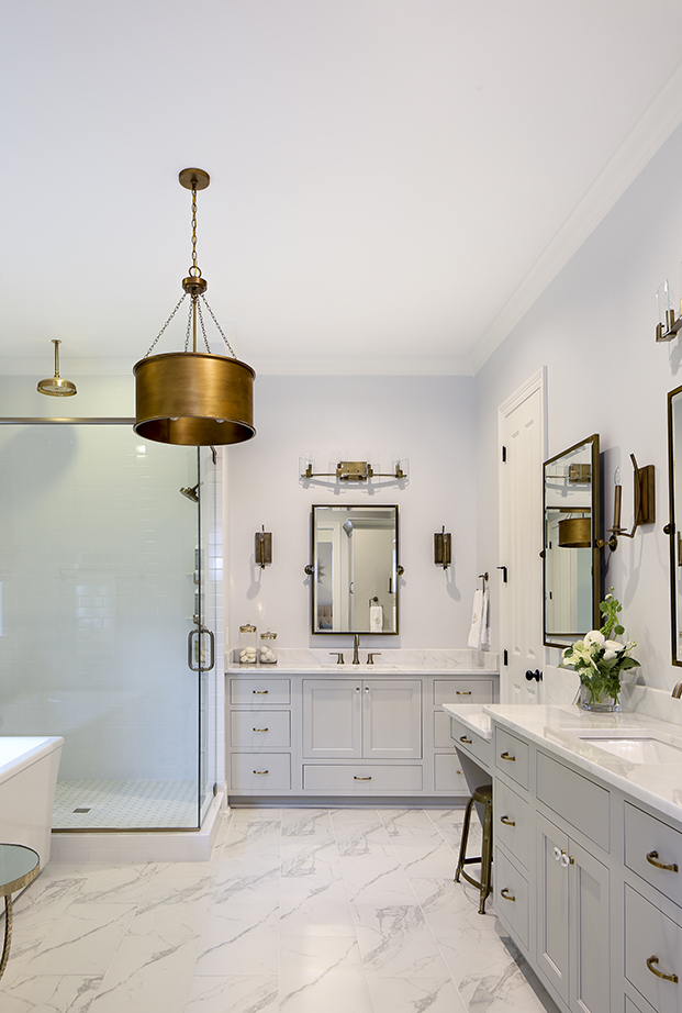 The greatest visual change the duo made to the house can be seen in the kitchen, where a U-shaped, two-tiered island was replaced with one that is 10 by 6 feet, per Scott’s request. Perla Venata quartzite, installed by Menzie Stone Company, tops Shiloh inset-style cabinets, by Sexton Kitchen & Bath. The entire island offers ample storage underneath with easy access, and it also houses a dishwasher, microwave and warming drawer.
