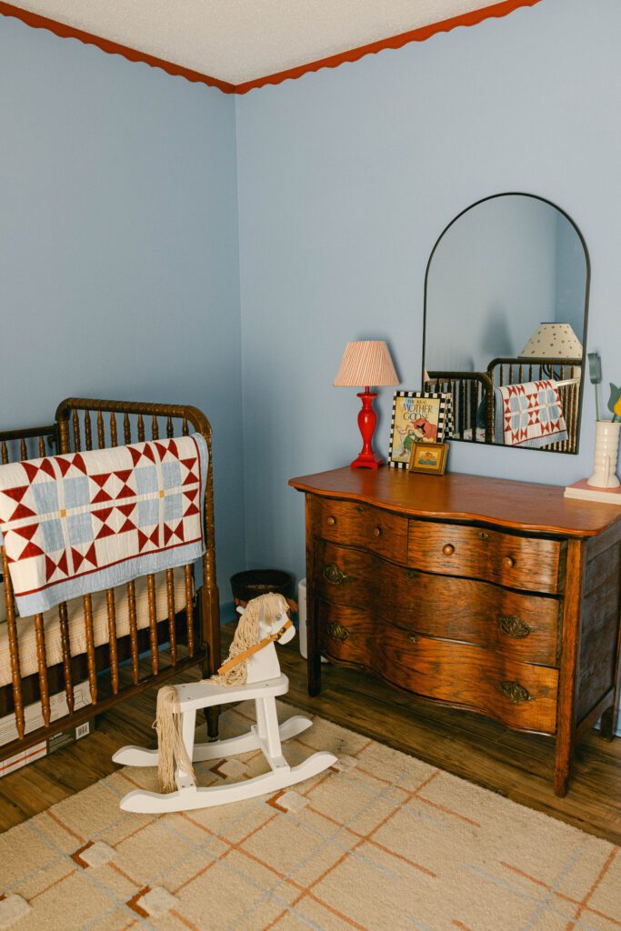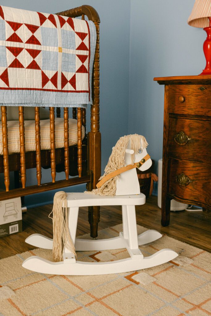 Darian Esser, a new mom and brand photographer for Queen of Sparkles, has also experienced that familiar tug of desire and disappointment. Instead of feeling discouraged or impulsively spending a fortune, Esser uses her thrifting and upcycling skills to recreate the piece herself. And all that creative work became a beautiful labor of love for her daughter Isla’s nursery.