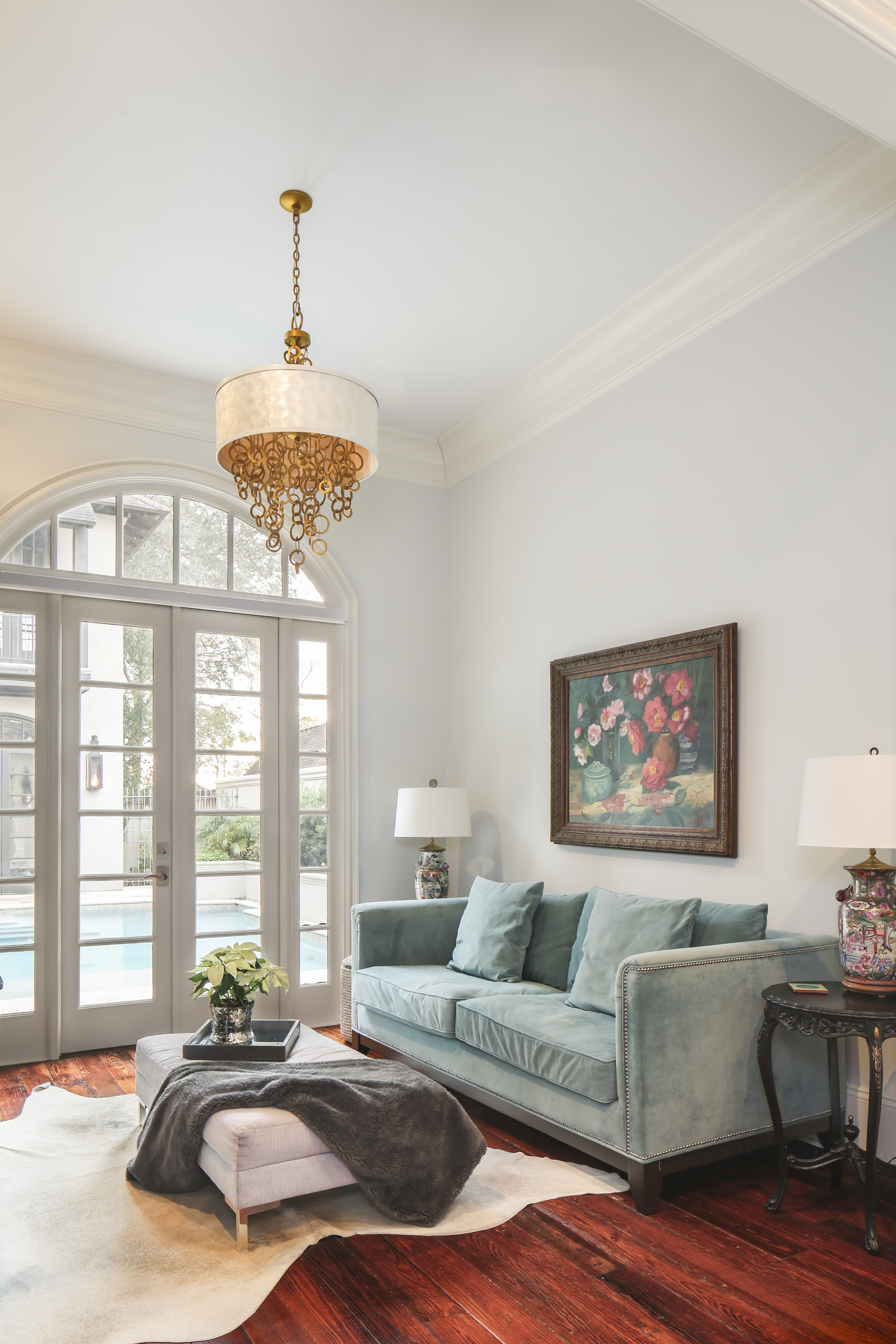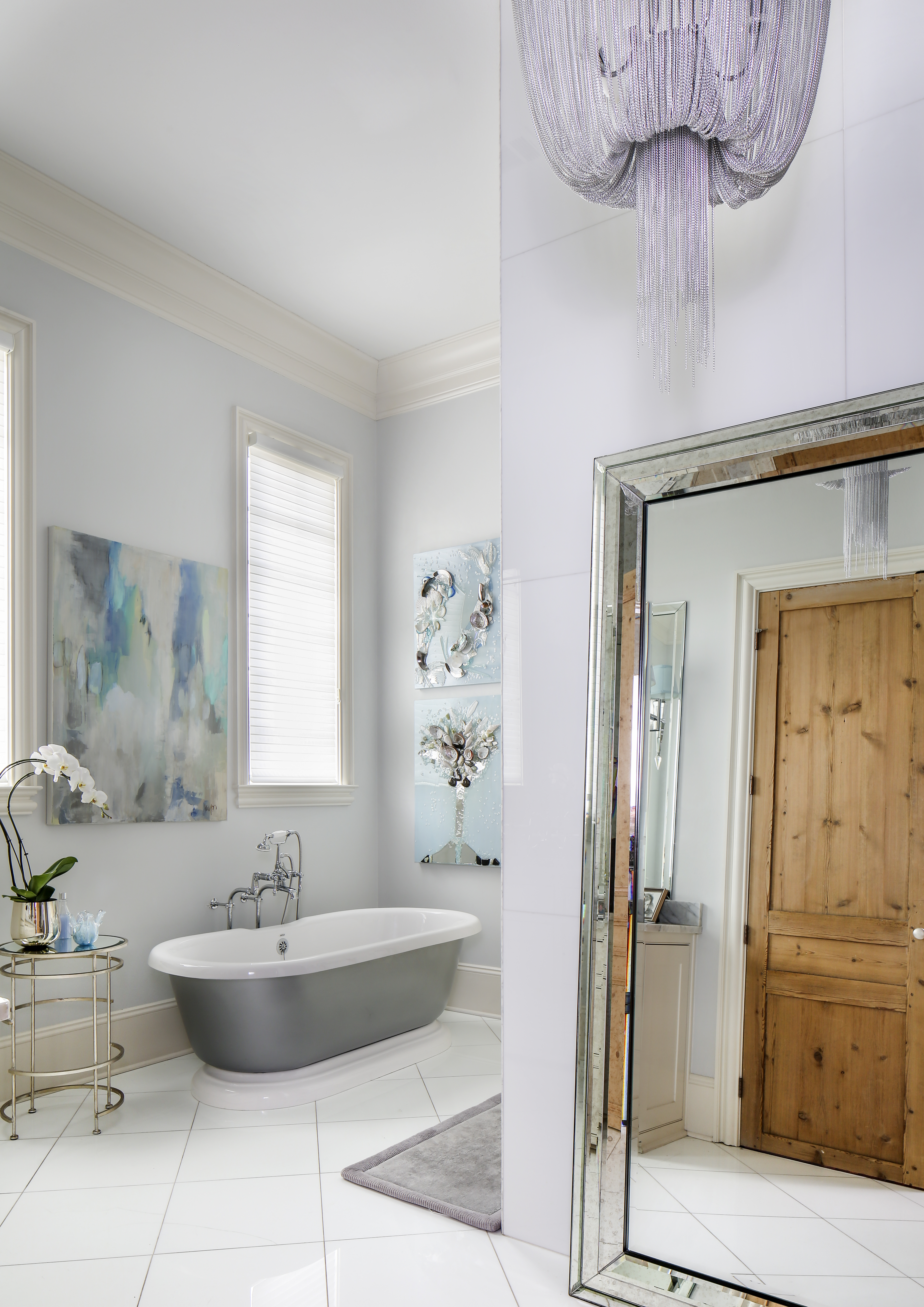 Also unexpected are the overscale light fixtures used elsewhere throughout the house, including those in the master bath and the master sitting area and topping the island in the kitchen. If Cleme loved a chandelier, she bought it and made it work in the home. With soaring ceilings and graciously sized rooms, bigger often worked better. The chandeliers also created a statement without the need for a lot of excess furniture.