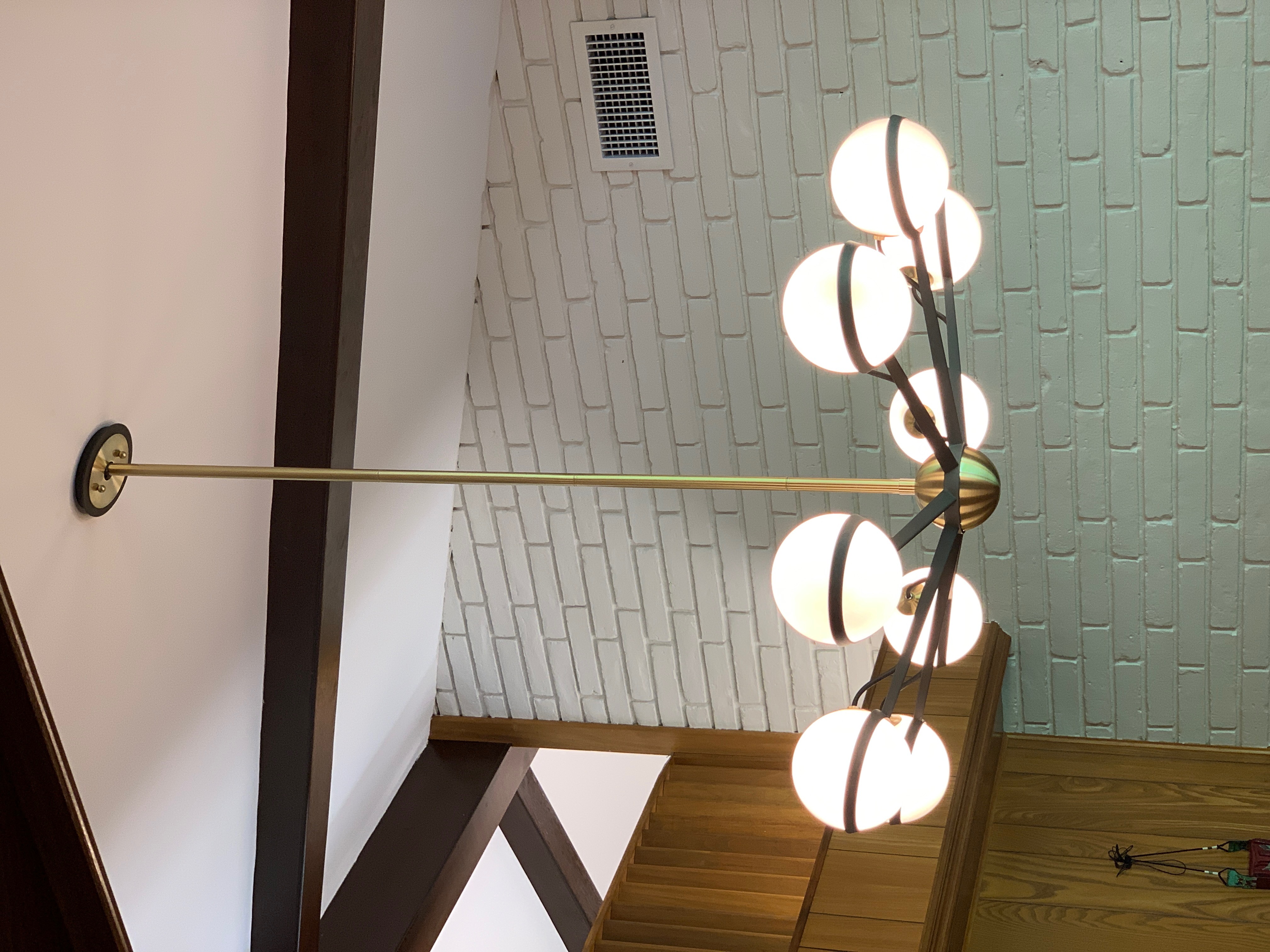 These new finishes aren’t exclusive to flush mounts, though. They carry over to the midcentury chandelier category, which includes sputnik styles, as well as globes and other geometric and clean-lined designs.