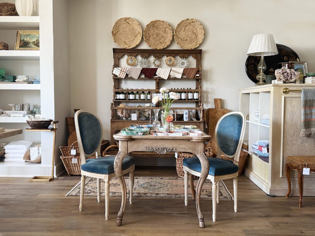 Customers can expect a thoughtfully curated mix of antique furniture and artwork, custom upholstery, bedding and bath linens, a blend of antique and new lighting and a beautiful selection of accessories, both old and new. Whether you’re looking for a unique statement piece or everyday essentials, our shop offers a blend of timeless finds and functional favorites that reflect the way we design: layered, elegant and lived-in.