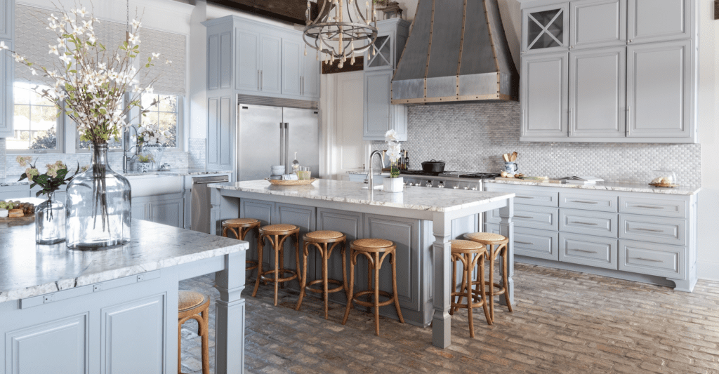 This kitchen proves that two is better than one. Brandon and Ronyell Dodson, owners of AP Dodson Home Builders, tasked interior designer Kristina Petit with the open kitchen, keeping and dining areas for their residence built for their family of six. A pair of islands ensures that homework and meal prep can take place at the same time. Read more here.