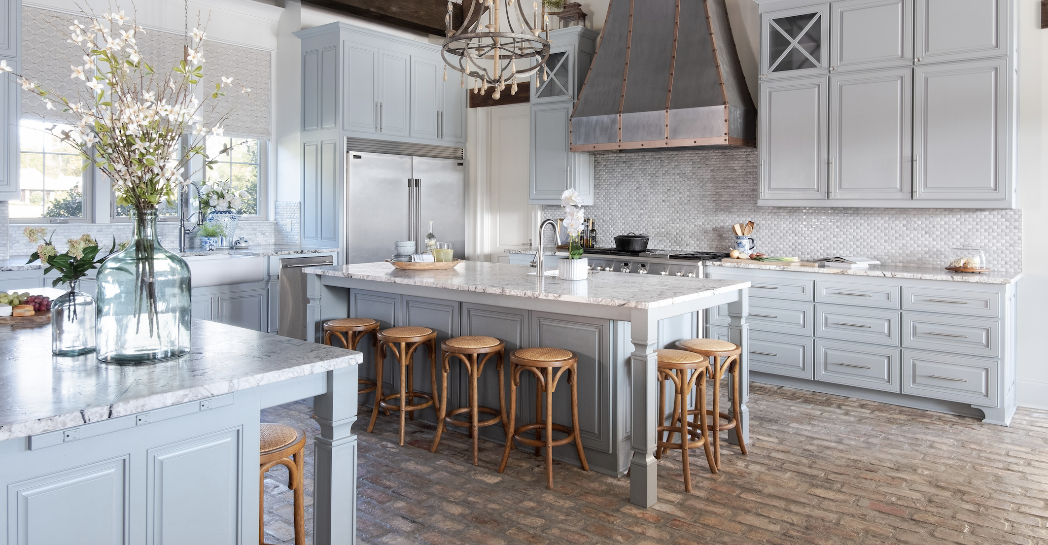 No matter how plush and comfortable the seating of the living room or keeping room is or how much care goes into the tablescape of the formal dining room, most people gravitate to the kitchen, especially during the holiday season. So, this is our end-of-the-year ode to kitchens.