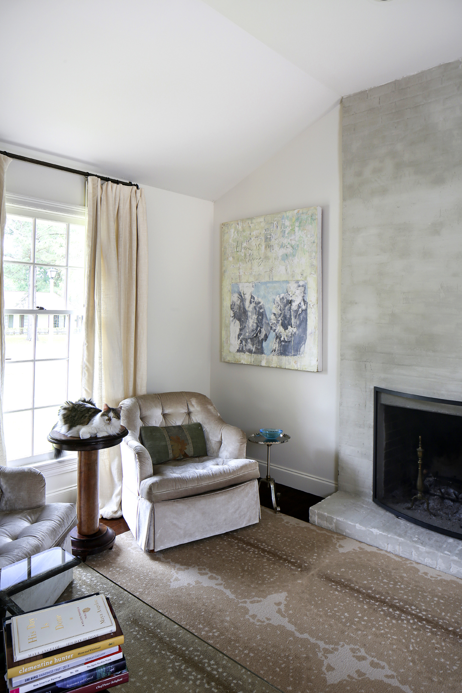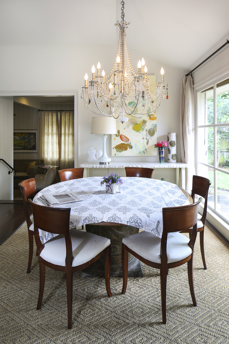 Though she and her family adore the space they now call home, Ann’s spontaneous nature won’t let her get too comfortable. The neutral drapes that hang in several rooms puddle at the floor, evidence that they have been moved from house to house with varying window heights. But a proper trimming and hemming would be too much of a commitment. Ann says she envisions packing up and moving again after her professional move to a new gallery space is complete early next year.