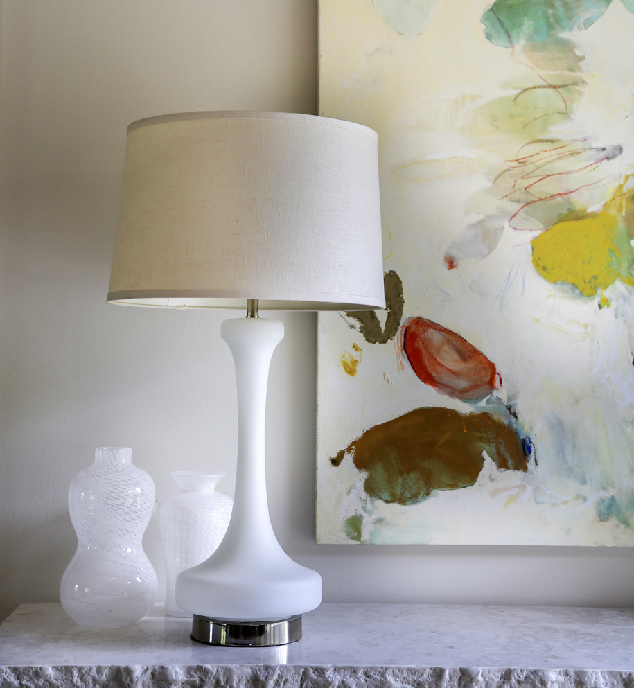 Ann says the Hayes Friedman painting in the foyer is her favorite in the house. The table is home to an ever-changing still life of objets d’art. “Sometimes it’s just all about vases,” she says of the current arrangement, which also features a vintage lamp from Dixon Smith Interiors.