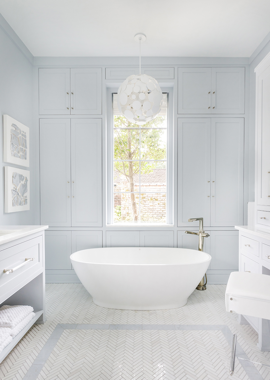 The same is true in the powder room—a space that was created during the full kitchen renovation executed by Ourso Designs, with the help of Cannon’s team. Taking up what would have been part of a large home office, the powder room was a last-minute addition that Weston says made so much more sense for her family’s lifestyle, which focuses largely on entertaining friends and family.