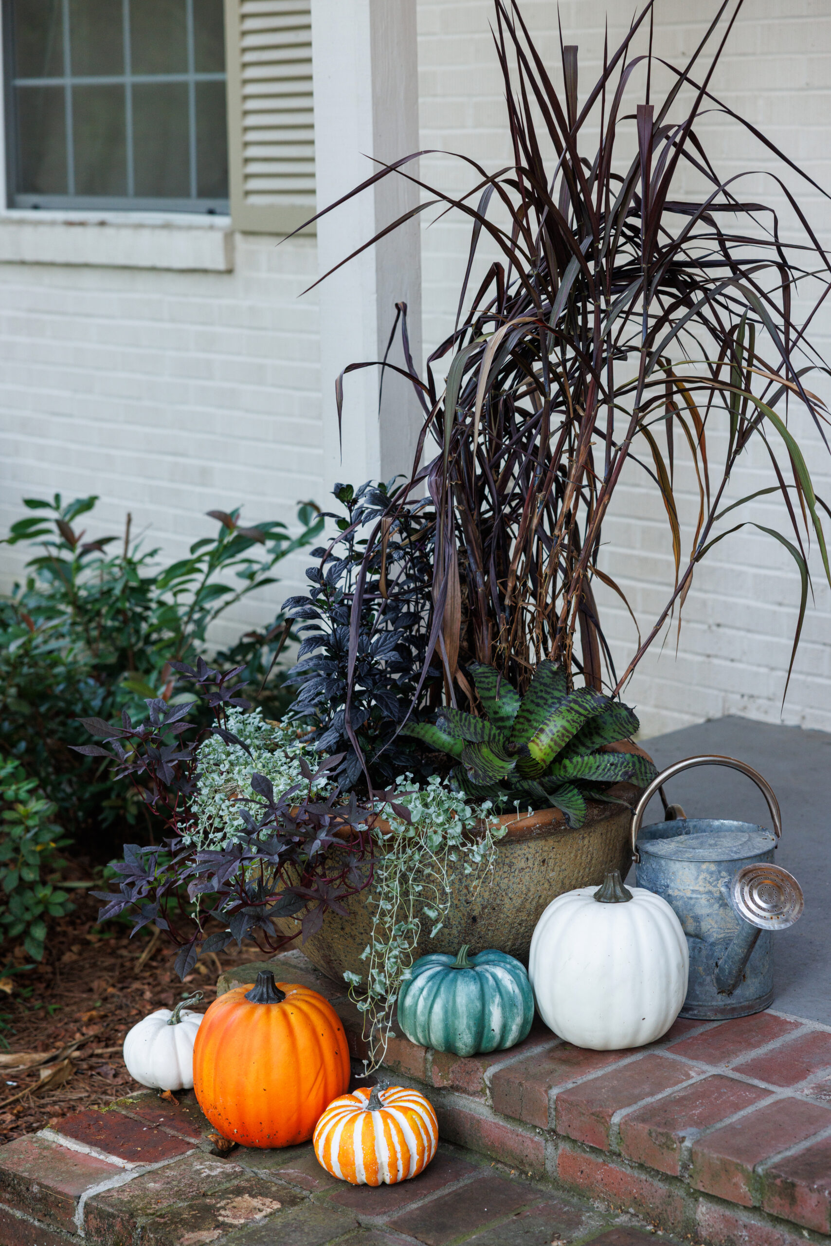 Black is not a typical foliage color for plantings and front porch décor, but when used wisely, it creates a bold and dramatic aesthetic. Embrace the dark side this Halloween for a porch that is unforgettable!