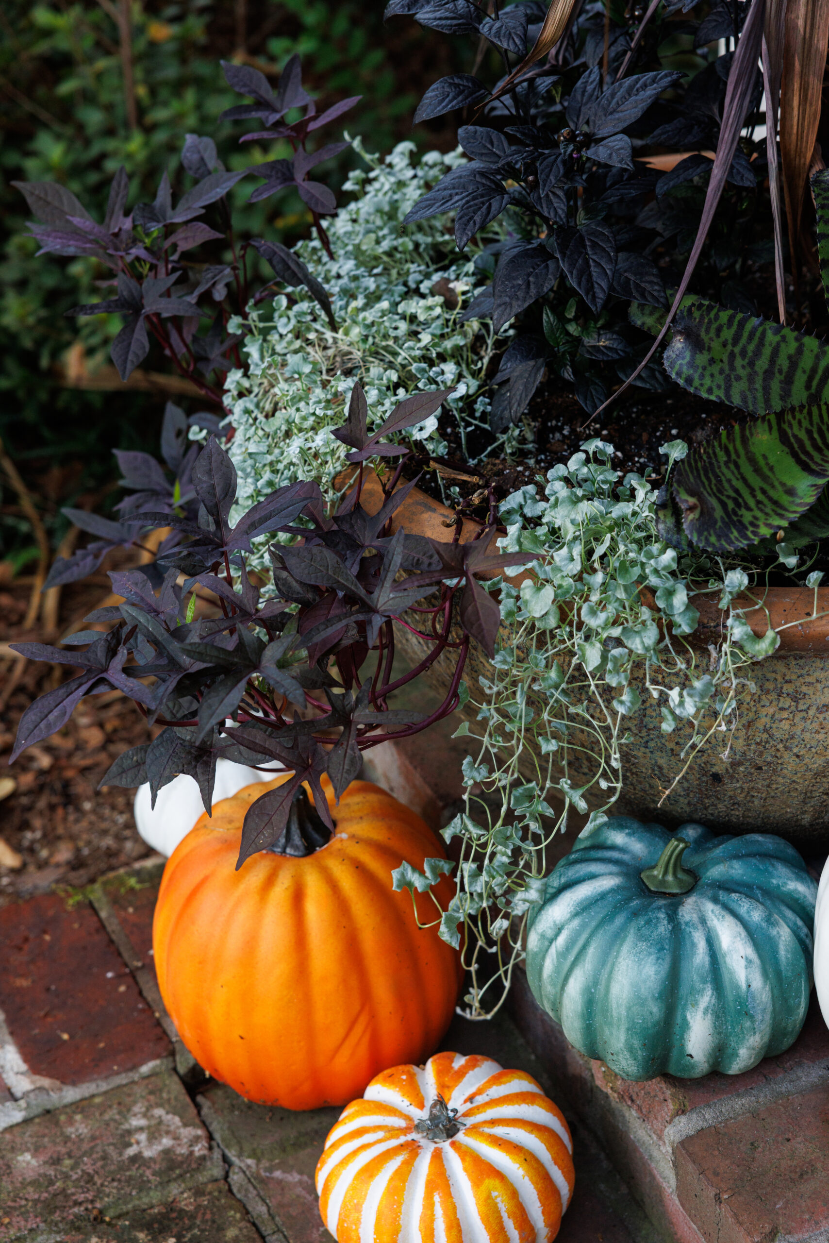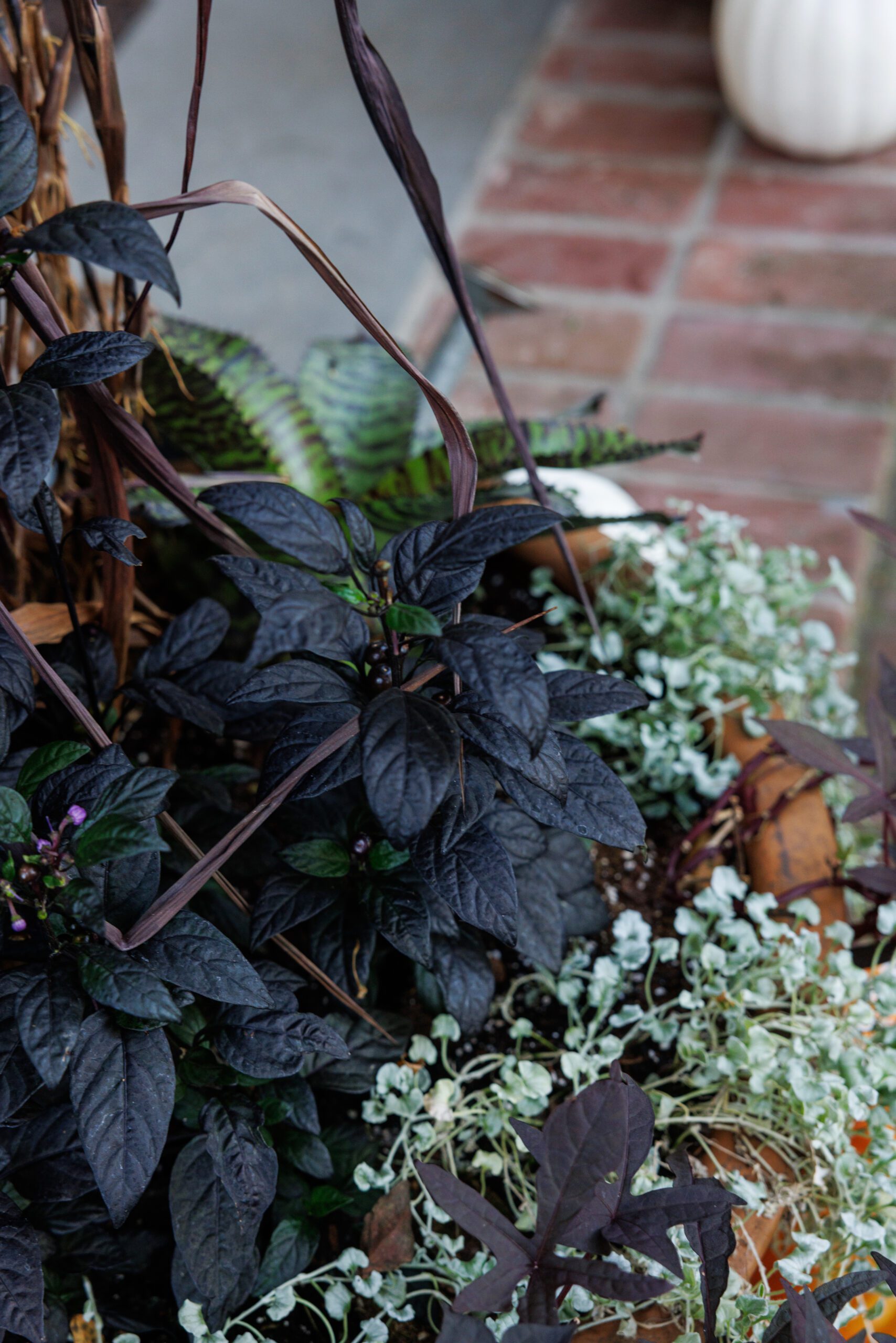 Embrace the dark side this Halloween with front porch plantings in midnight hues