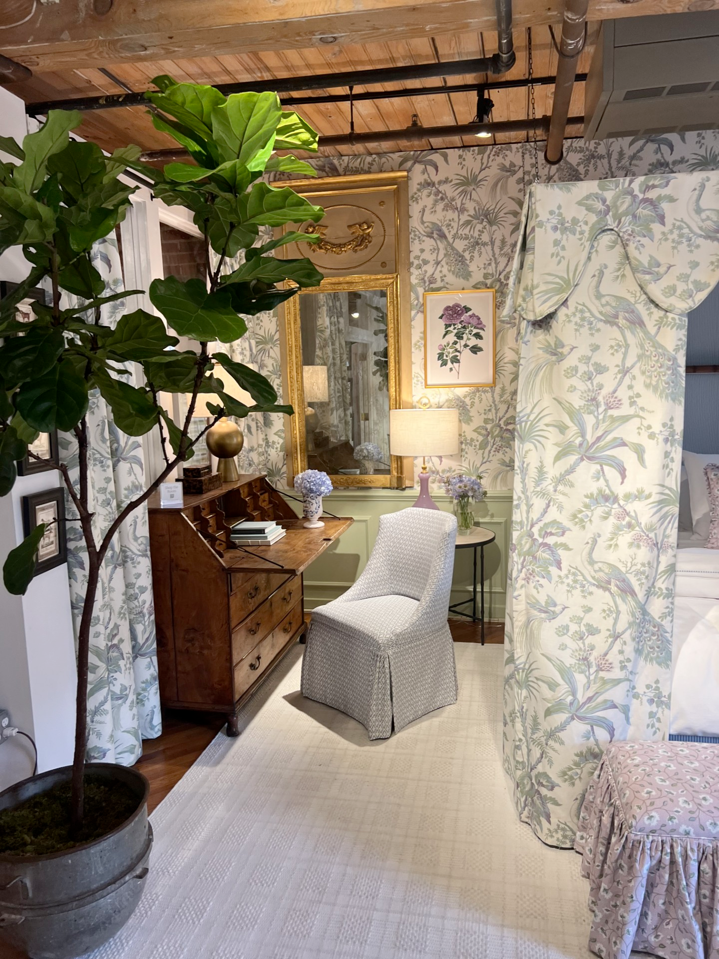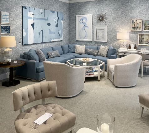 “Another thing we loved was the creative use of color. We saw lots of pastel colors like pale pink, sage green, light blue and lavender. Blue has always been popular as it can really be a neutral, in my opinion, but I loved the look of layering different tones of the same color throughout a space. Thoughtful little details like piping and trim are great ways to bring in color if you want your space to read more neutral overall, but still want to incorporate some color. Pastels are a great option for people who want color, but don’t want to go bold. Pastel prints were also popular throughout different showrooms.”
