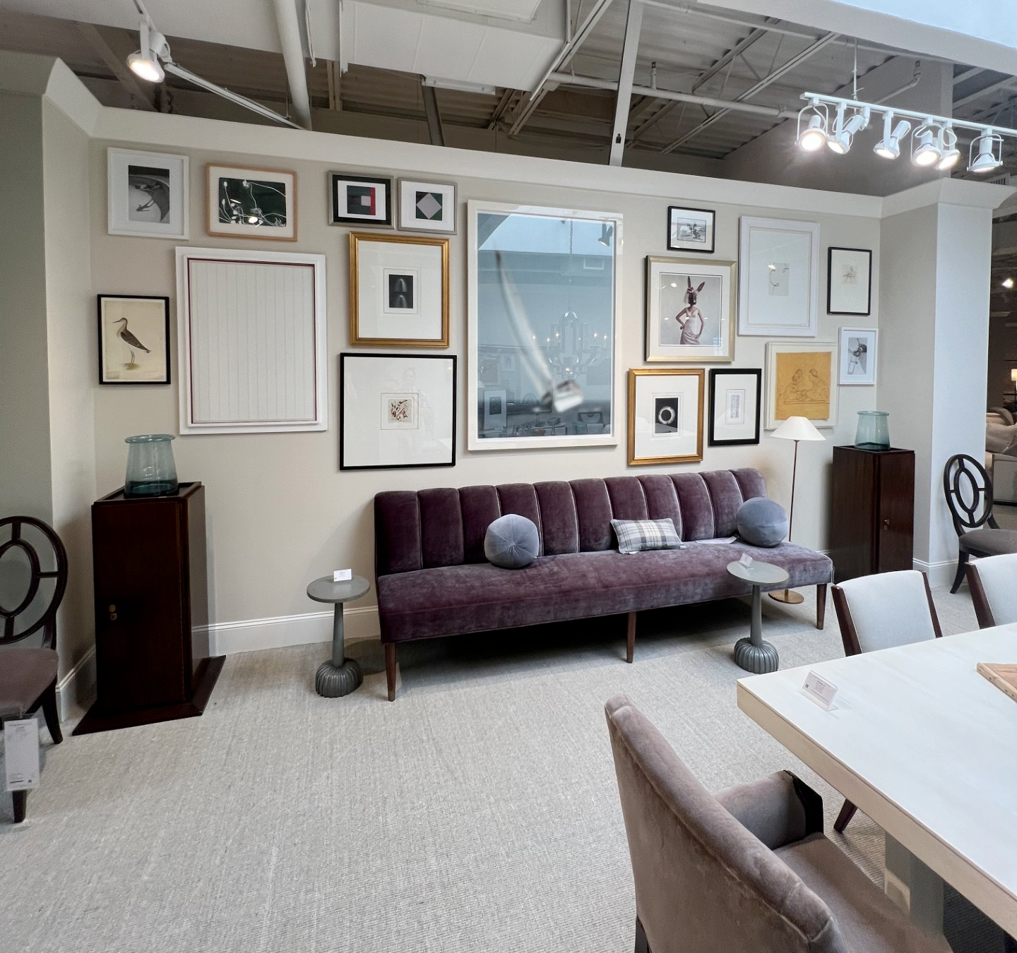 “The art placement at market really had me excited. I love a more unconventional approach to hanging art. There is no right answer when it comes to art because it’s very subjective. Be creative and free-flowing with placement! The more random the better. A few showrooms did this really well. I love this approach to art because it creates something interesting to look at and is a great conversation starter. I think there is a push for less perfectionism and more expressionism in the home. I encourage you to pull out the random old frames, mirrors and art in the closet and hang them all together in one big collage. If you aren’t sure where to start, Ann Connelly is a great resource.”