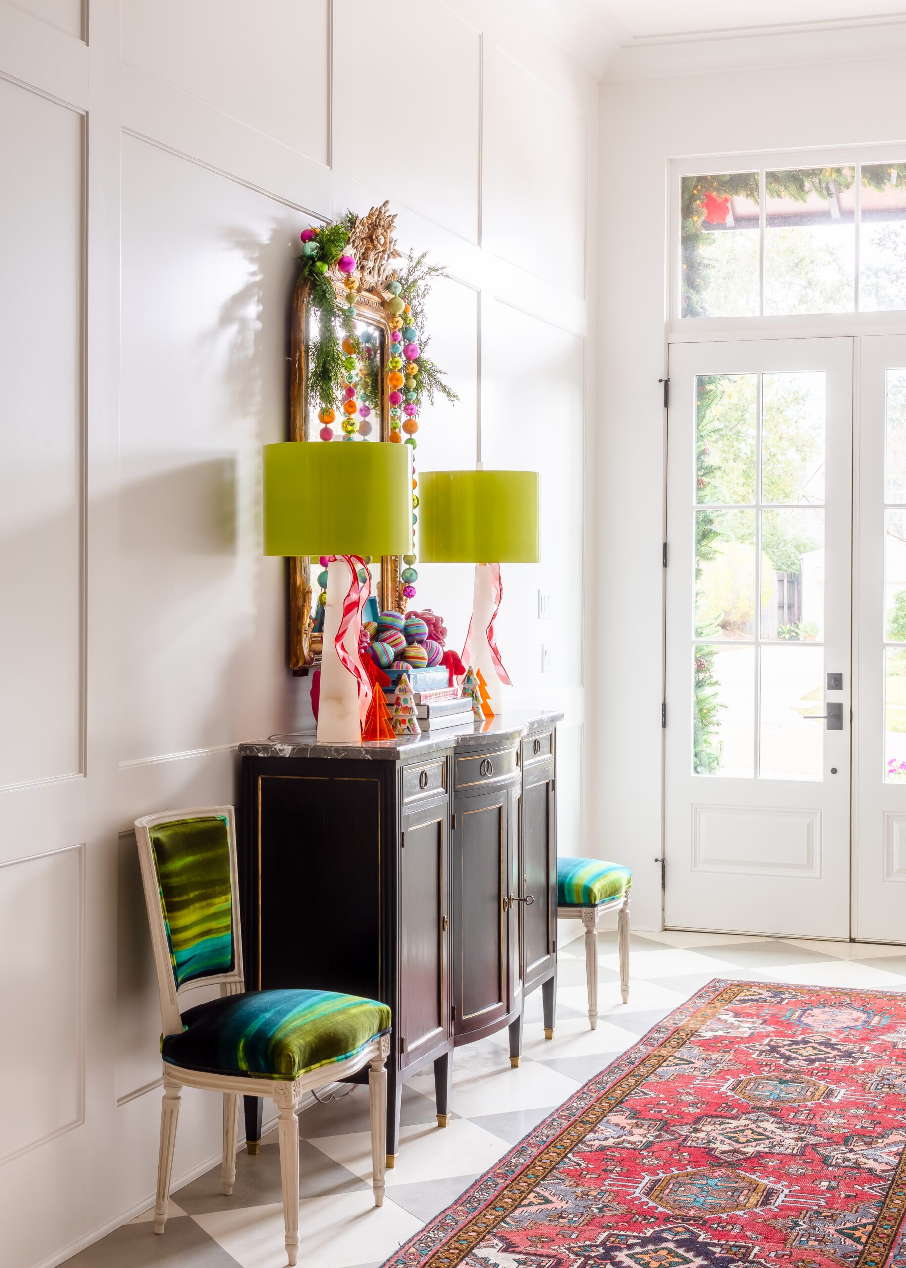 For the foyer, that vision ties back to the Longshore painting, its vivid colors inspiring the garlands, ribbons and ornaments. One tree is devoted entirely to Longshore’s annual ornament releases, which Katie has collected for years.