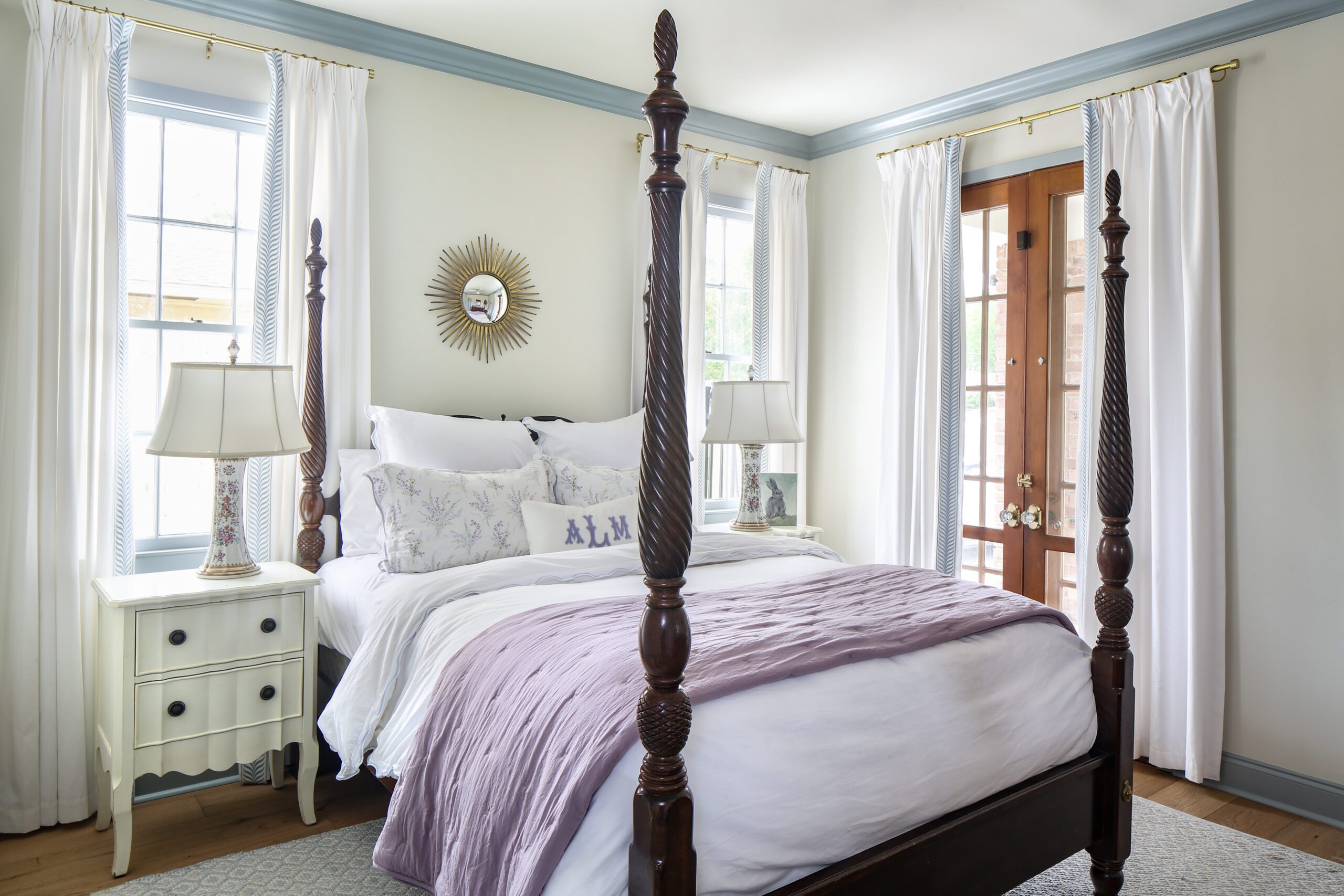 The family affair continued when the LeBlancs contacted architect Rachel Dansky, who is Heather’s cousin, to conceptualize the renovation. Though most of the rooms worked perfectly as is, Rachel offered ways to update the flow and function for modern family life. A former breakfast area, for example, became a laundry room and mudroom. The spacious kitchen retained its original footprint, but with new cabinetry, a new island, and a new bar area nearby. The bathroom in the primary suite was reconfigured to include his-and-hers closets and space for a freestanding tub and separate shower.