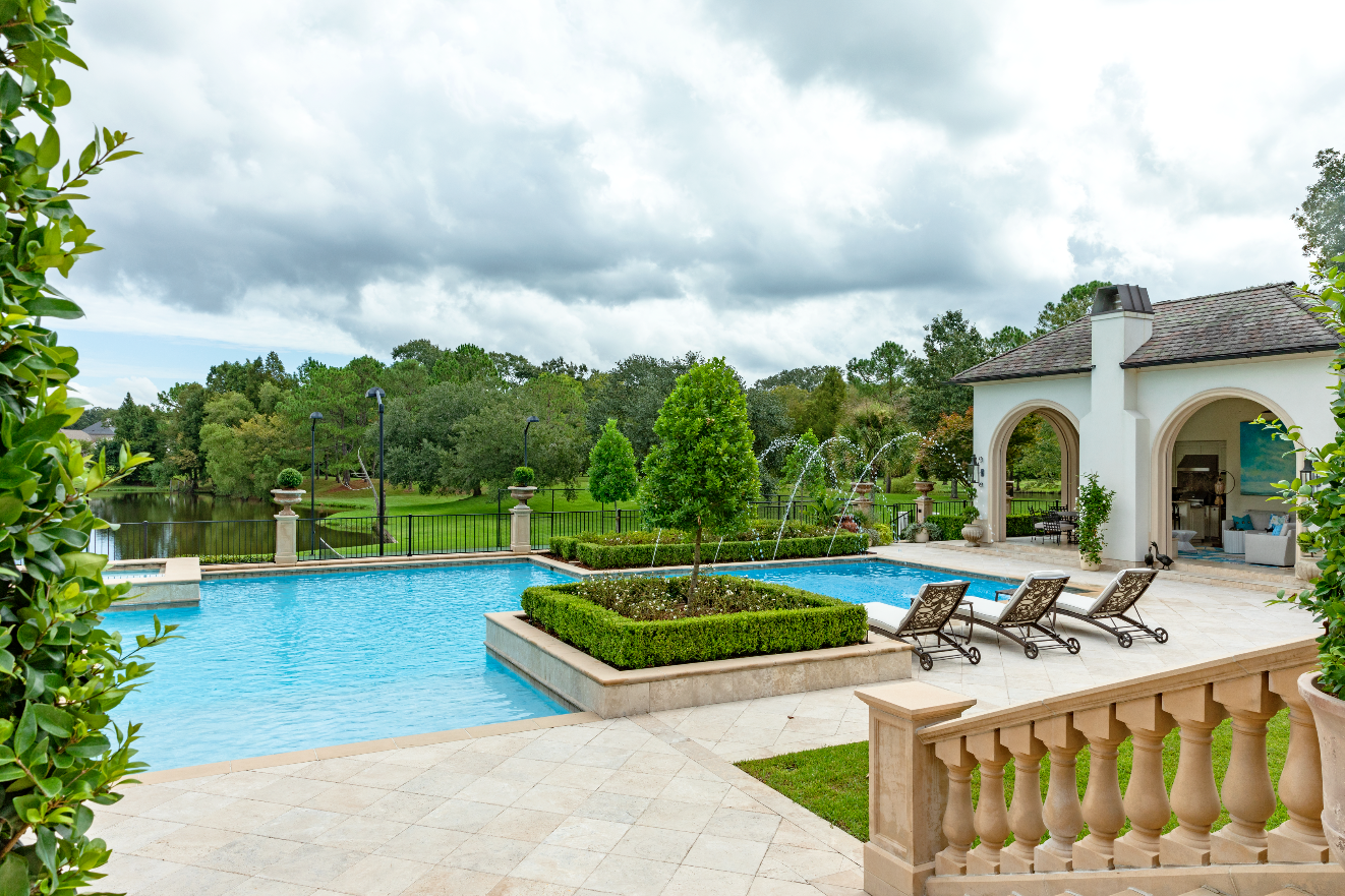 Miller used the same design mindset on the exteriors, where he removed overgrown palm trees, banana plants and tropical foliage in lieu of boxwoods, roses and holly bushes—all tightly manicured. The result is a more structured European garden that does not compete with the verandas, the pool and the view.