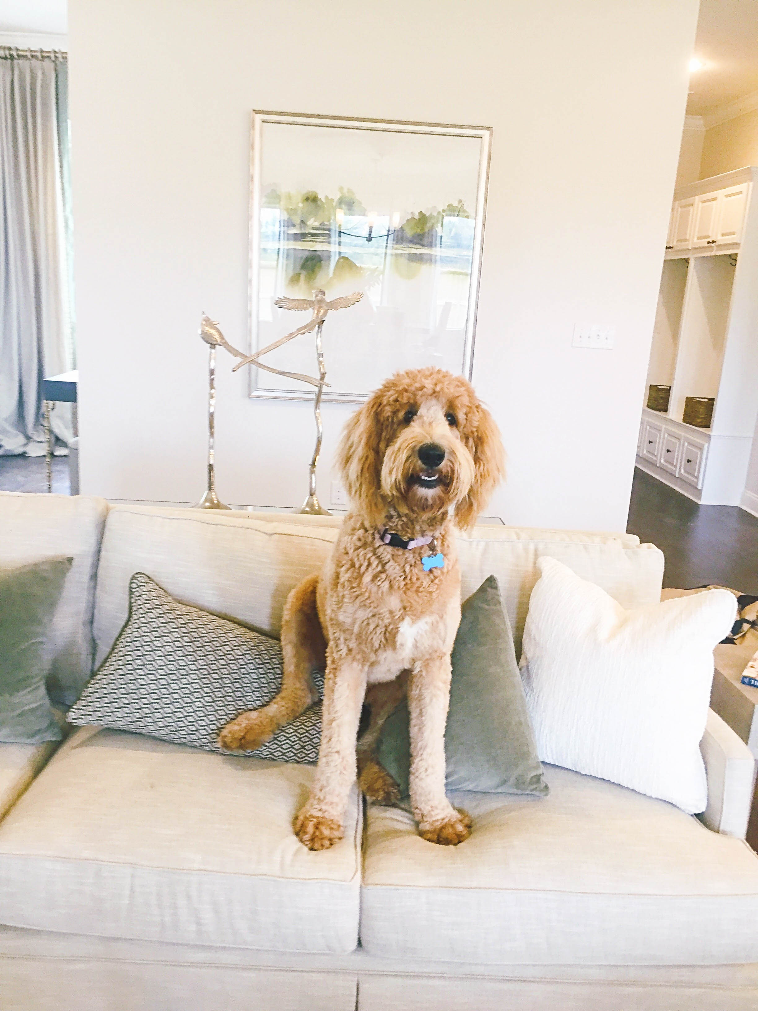 “When I walk through the selection process for home furnishings with clients, the conversation of pets reinforces the importance of buying quality goods so proper cleaning of carpets and fabric, when needed, will maintain the beauty,” explains Cason. “But personally, I have had more human spill debacles than dog maintenance issues.”