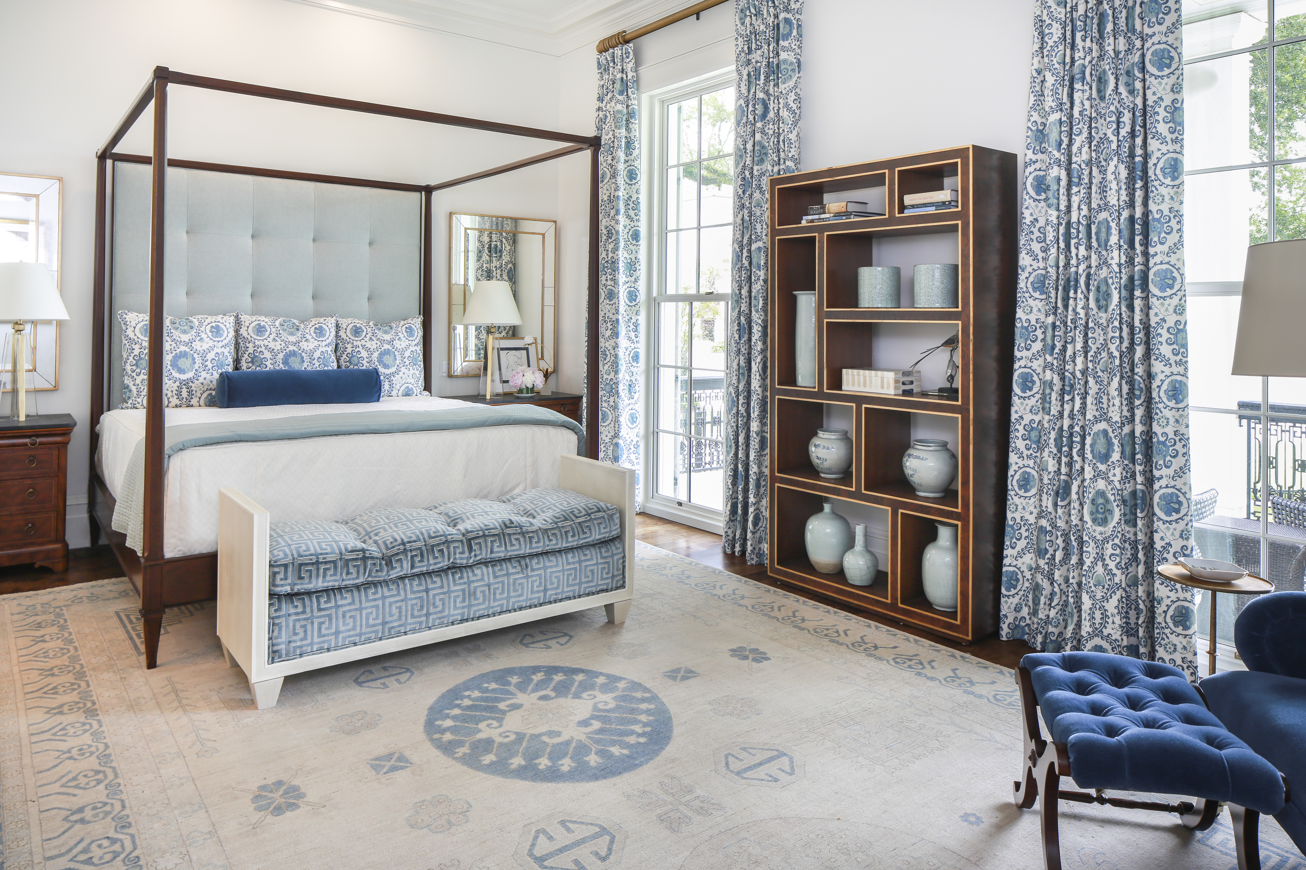 Construction ensued, with Landry collaborating with the Balhoffs on the selection of everything from appliances to stone to plumbing and light fixtures. While there may have been a myriad of choices to make, Sandra and Bill were set on one key detail: a timeless blue-and-white palette. “They love blue,” Landry says. “We used that as the main theme and then added other colors that would enhance each room. It’s as classic as the design of the house is, but it still feels fresh.”