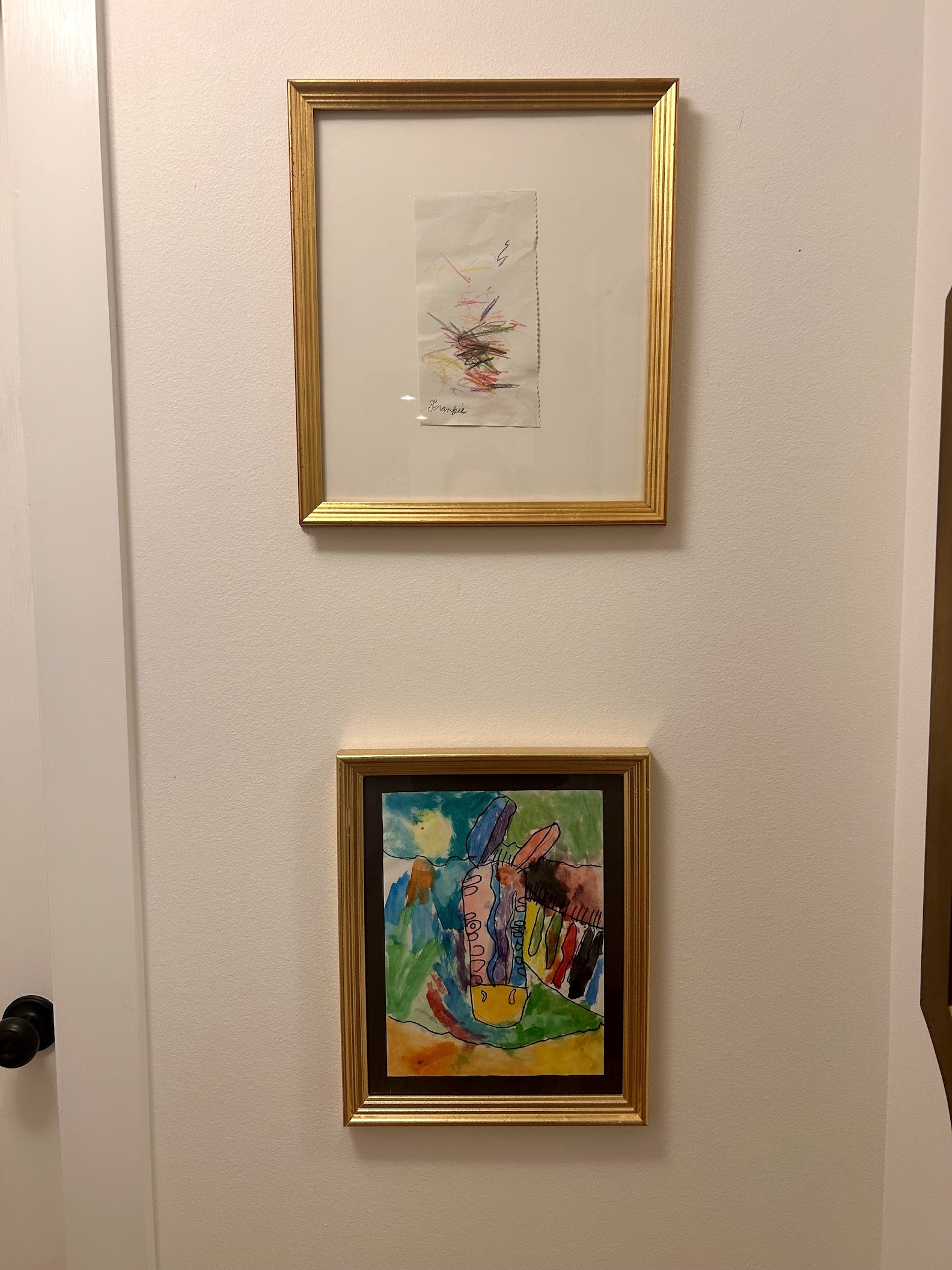 To Marchand, homemade art is one of the best ways to enhance a home’s comfort. Marchand’s two daughters, Penelope and Frankie, created all of the framed art displayed throughout the home, including the mug and artwork pictured above.”I find it invaluable compared to anything else,” she says.