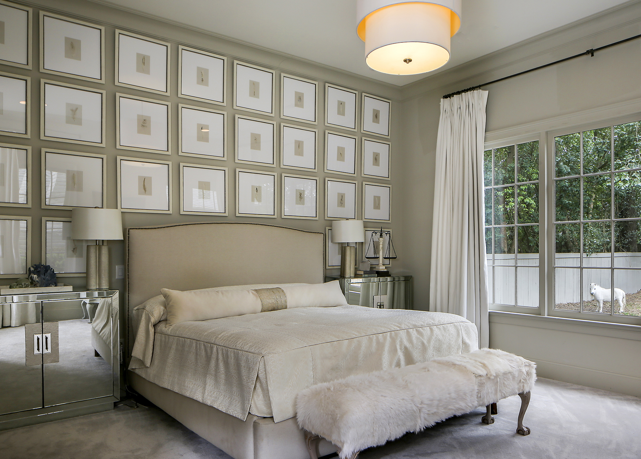 The couple didn’t have to look far to find help in pulling together their new home’s décor. They turned for style guidance to Lauren’s sister Shannon Barksdale Mahon, a designer and partner at their store Mint. “Our goal was to create a light and bright palette with pops of dark color for interest and drama,” Mahon says. “We chose a bright, neutral hue for the wall color that we carried throughout the main entry, formal living room, keeping room, kitchen and family room.”