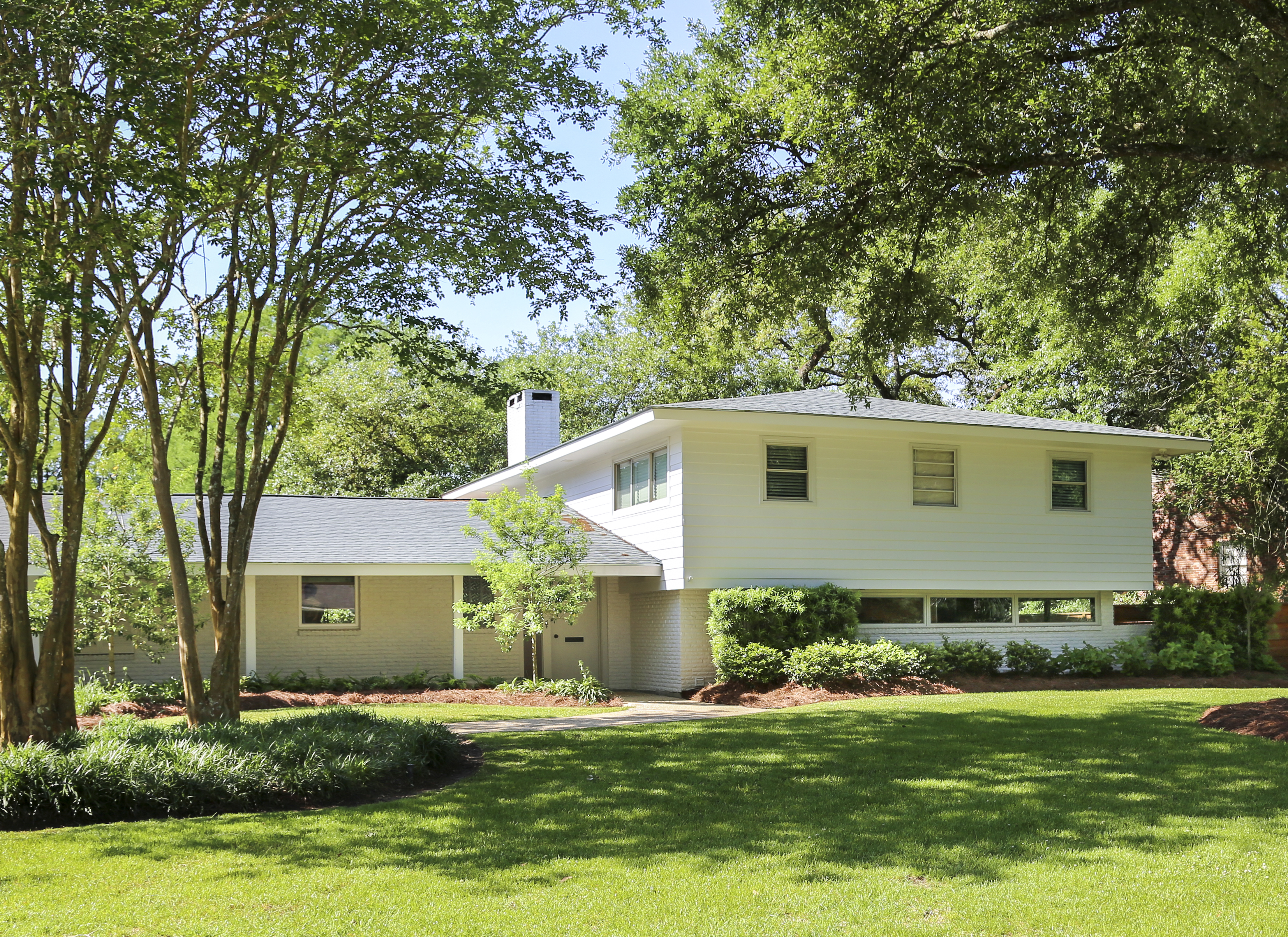 The 1 1/4-acre lot was large even for this neighborhood and shaded by oak and cypress trees. Despite the dated home’s drawbacks, including significant structural issues, the setting was enough to win them over. Whitney, who works in a specialized finance niche restoring historic buildings around the country, was eager to preserve the architecture of a solidly constructed older home, and Matt knew he could spearhead the renovation using skills picked up both while helping his parents restore homes and while serving in the Marine Corps.